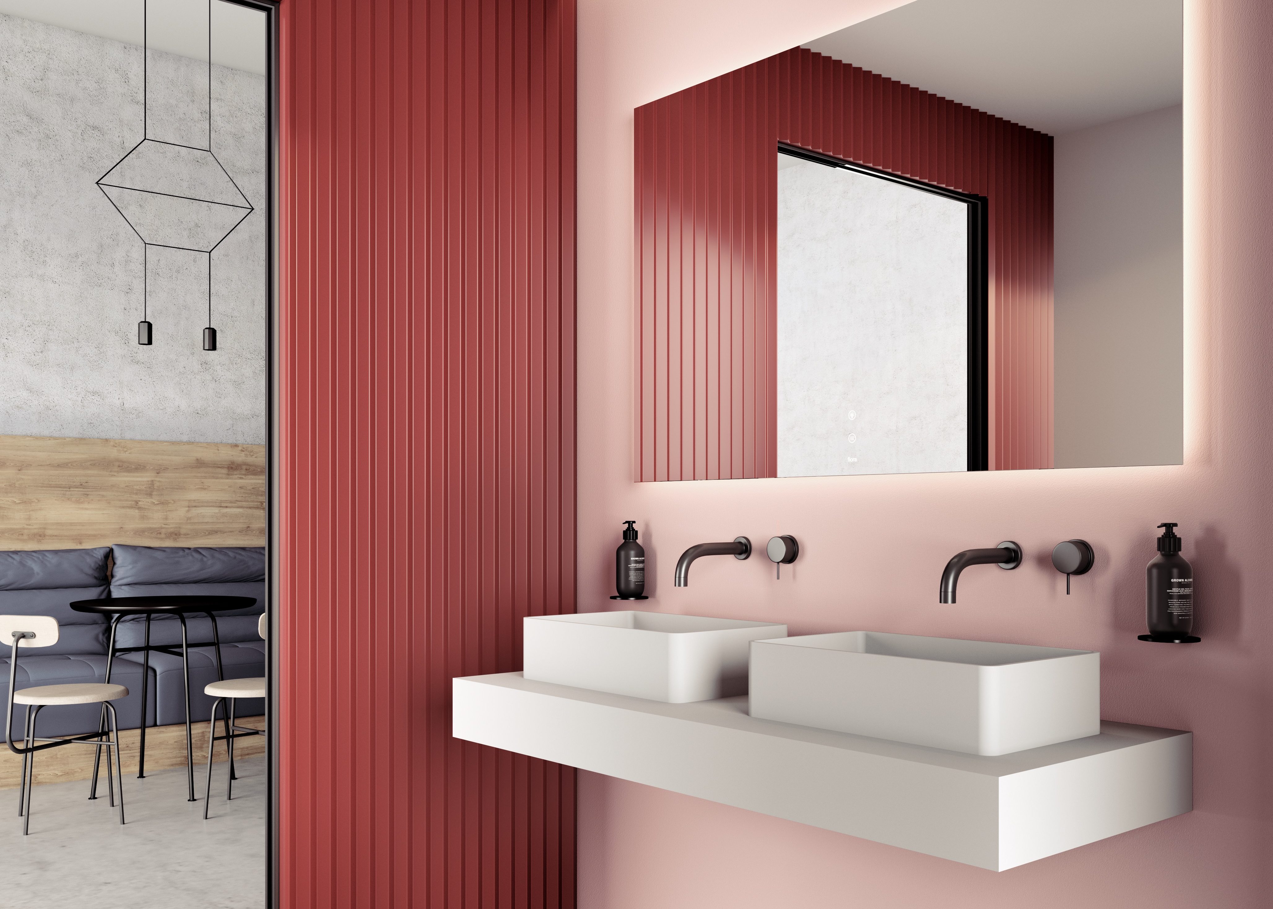 Fiora valorizza il suo lavoro con il poliuretano mediante una stretta collaborazione con Simone Polga. Il designer italiano ha ideato una nuova texture che viene introdotta nella collezione bagno del marchio. Spring prende come punto di partenza il parallelismo il parallelismo grafico tra la texture di una foglia vista attraverso un microscopio ed il terreno arido tipico dei climi secchi. Ciò ha consentito al designer di creare una texture che coniuga esteticamente e concettualmente nel bagno, ma che funge anche da elemento di sensibilizzazione sulla necessità di rispettare un bene essenziale per l’umanità: l’acqua.