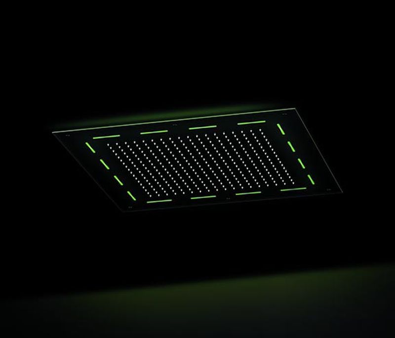 2 Playone nella versione con getto _rain_evFir-Italia arricchisce la sua collezione soffioni doccia multifunzione con il nuovo modello di soffione ad incasso a soffitto 800×800 mm, totalmente rivoluzionato nel design e nella tecnologia. 1 Modello RGB- con getto pioggia e sistema di cromoterapia a otto coloriPlayone è la soluzione doccia, ideale per realizzare spazi di relax e benessere sia in abitazioni private che in spa, disponibile nella versione base con getto a “pioggia” e in quella completa anche di sistema cromoterapia a otto colori.