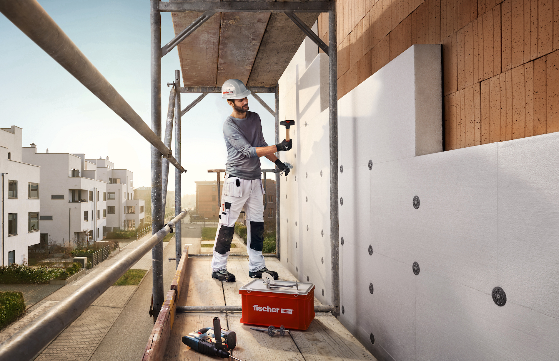 fischer offre fissaggi per cappotti isolanti e per installazioni su cappotti isolanti senza ponte termico. Una gamma completa di tasselli con installazione ad avvitamento e a battere per fissaggio a scomparsa nel materiale isolante o a filo superficie, certificati per calcestruzzo, mattoni pieni o forati e su strutture in legno o pannelli Osb.