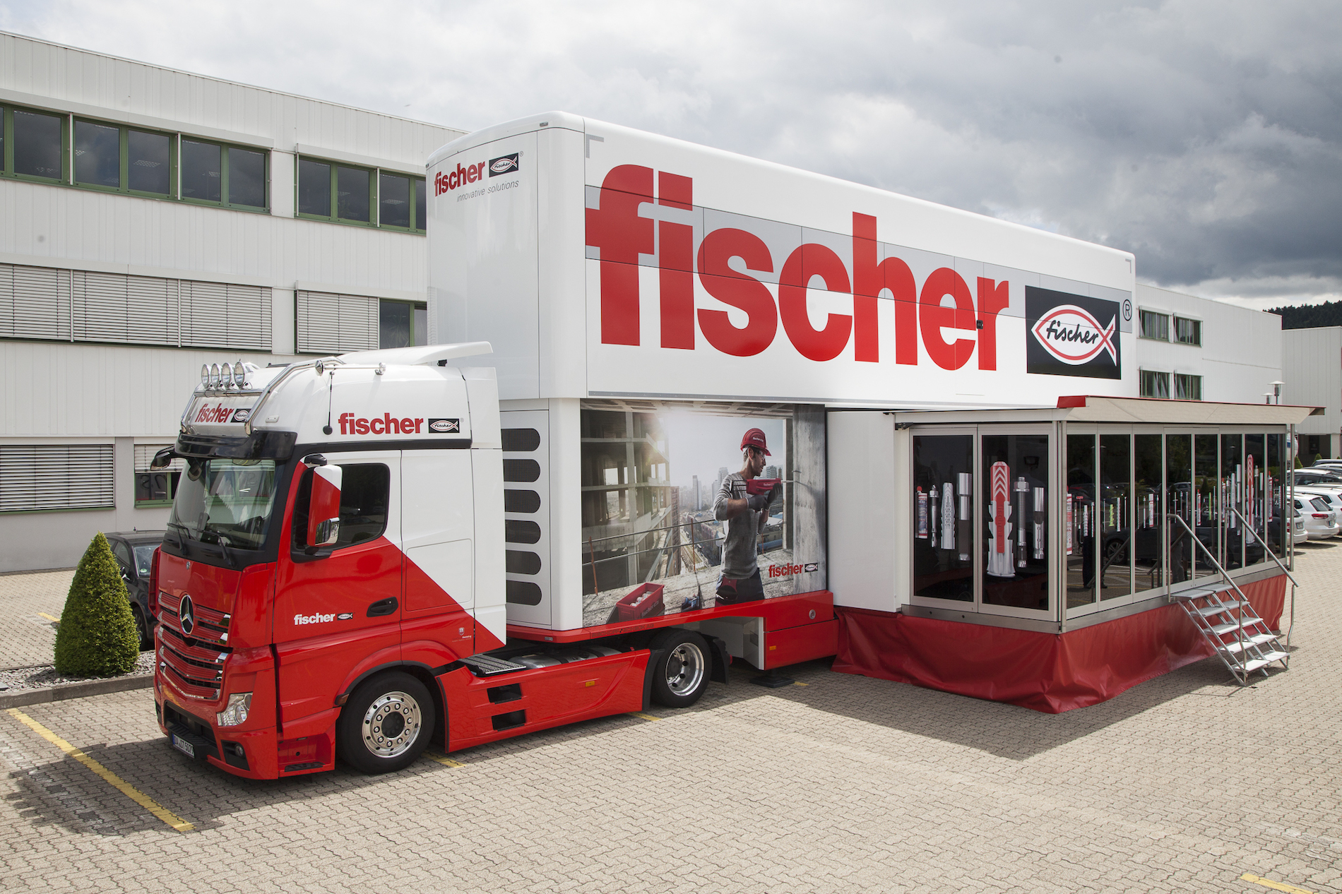 È il più grande spazio formativo su ruote nell’ambito edilizia, progettato come Accademia mobile e al tempo stesso come Centro Espositivo delle soluzioni di fissaggio fischer. La parete mobile apre infatti a un mondo di esperienze grande 90 mq disposti su 2 piani, lungo 16.5 m e alto 6.25 m quando è esteso completamente.