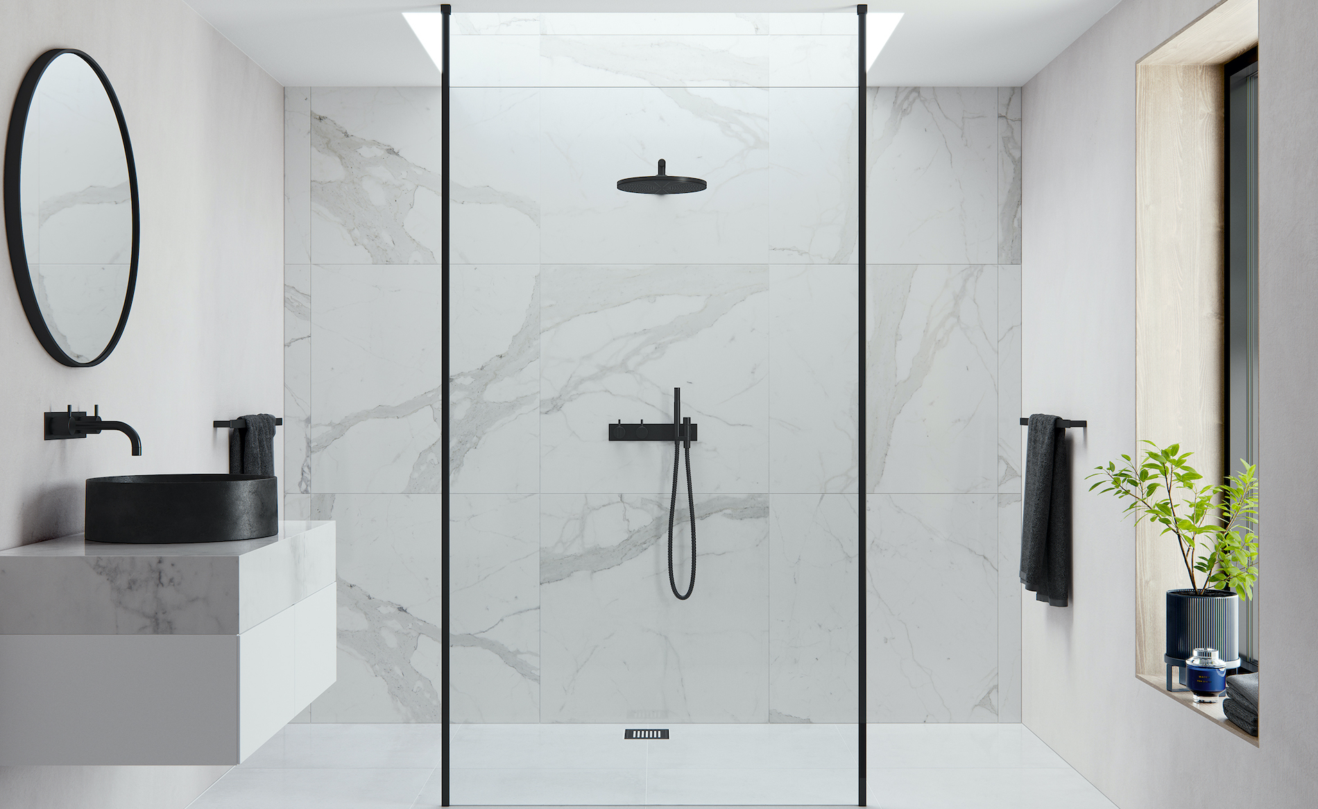 Ogni pannello è disponibile in vetro di sicurezza temperato da 10 mm che è stato trattato con un rivestimento idrofobico per resistere all’accumulo di calcare e sporco. Ayo è disponibile in finitura colore profilo nero opaco o silver per un’integrazione perfetta in qualsiasi ambiente bagno.
