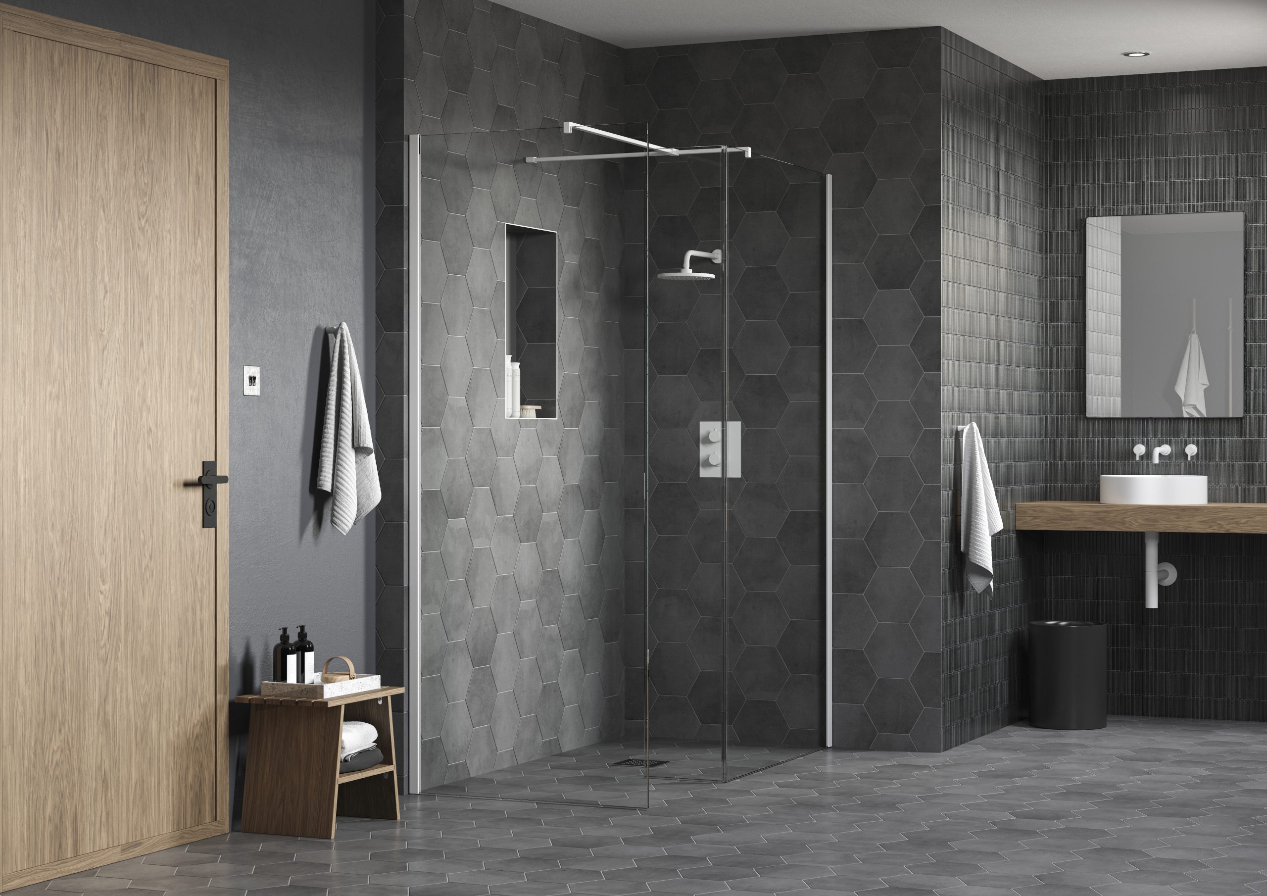 vetro di sicurezza temperato, dello spessore di 10mm, è elegante, traslucido e trattato con il rivestimento idrorepellente ClearVue di serie, che impedisce l’accumulo di sporco e calcare sulla superficie.