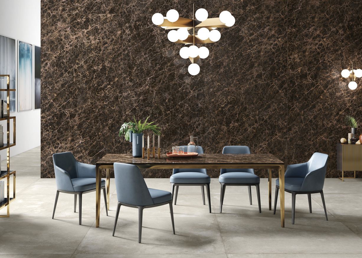 Nuovo effetto marmo Emperador, linea Marmi Marxfine. Foto di FMG