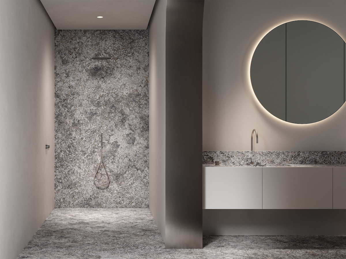 Ispirato a un granito estratto nei Pirenei, nella Val d’Aran dalla quale la roccia prende il nome, presenta una tessitura granulare grigio-blu con ombreggiature bianche che conferiscono un’identità estetica che dialoga sia con lo stile classico sia moderno.