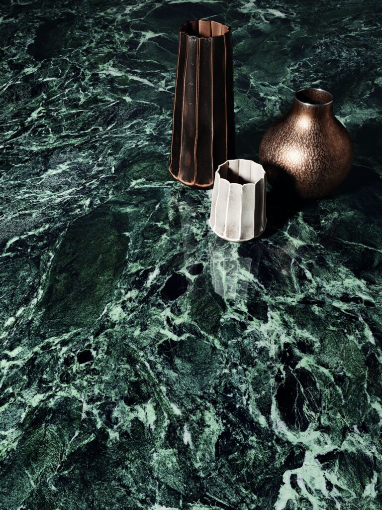 FMG Fabbrica Marmi e Graniti con Aosta Green Marble propone non solo una interpretazione del marmo verde italiano, ma offre una rilettura del concetto del lusso: molteplici composizioni funzionali e sartoriali al servizio di progettisti e interior design per assecondare le richieste e le esigenze dell’abitare contemporaneo.