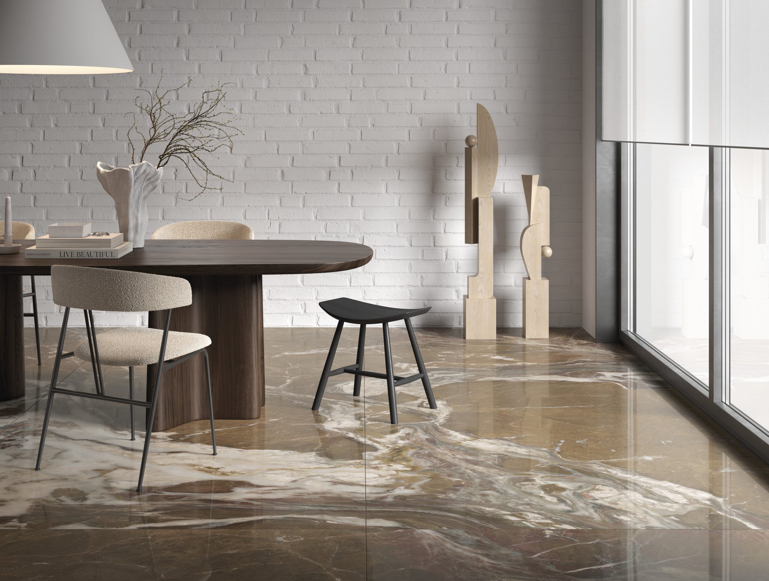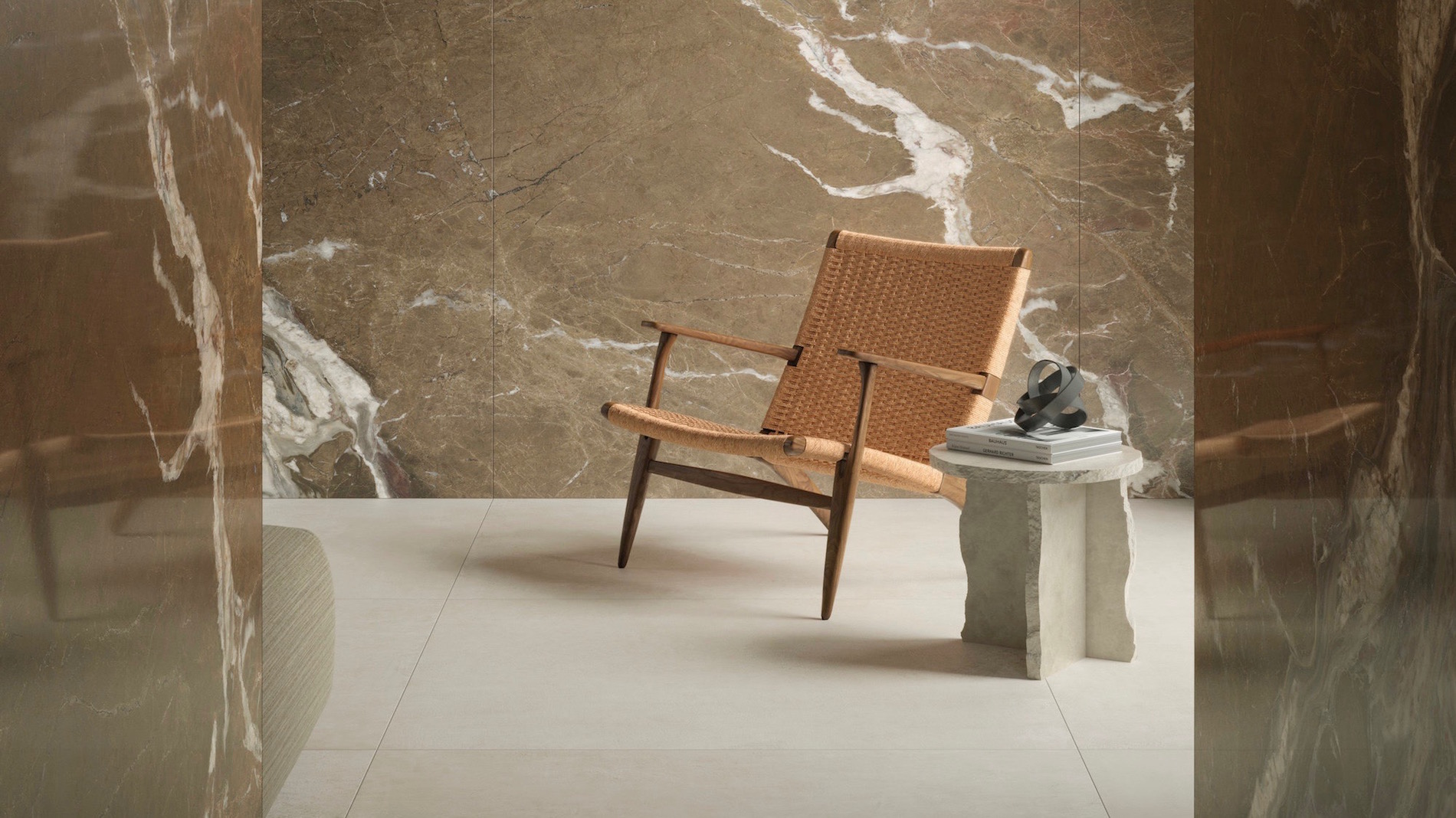 Nel catalogo delle grandi lastre MaxFine di Fmg Fabbrica Marmi e Graniti fa ingresso Brown Fusion, la superficie dall’esplicito rimando alla bellezza del marmo.