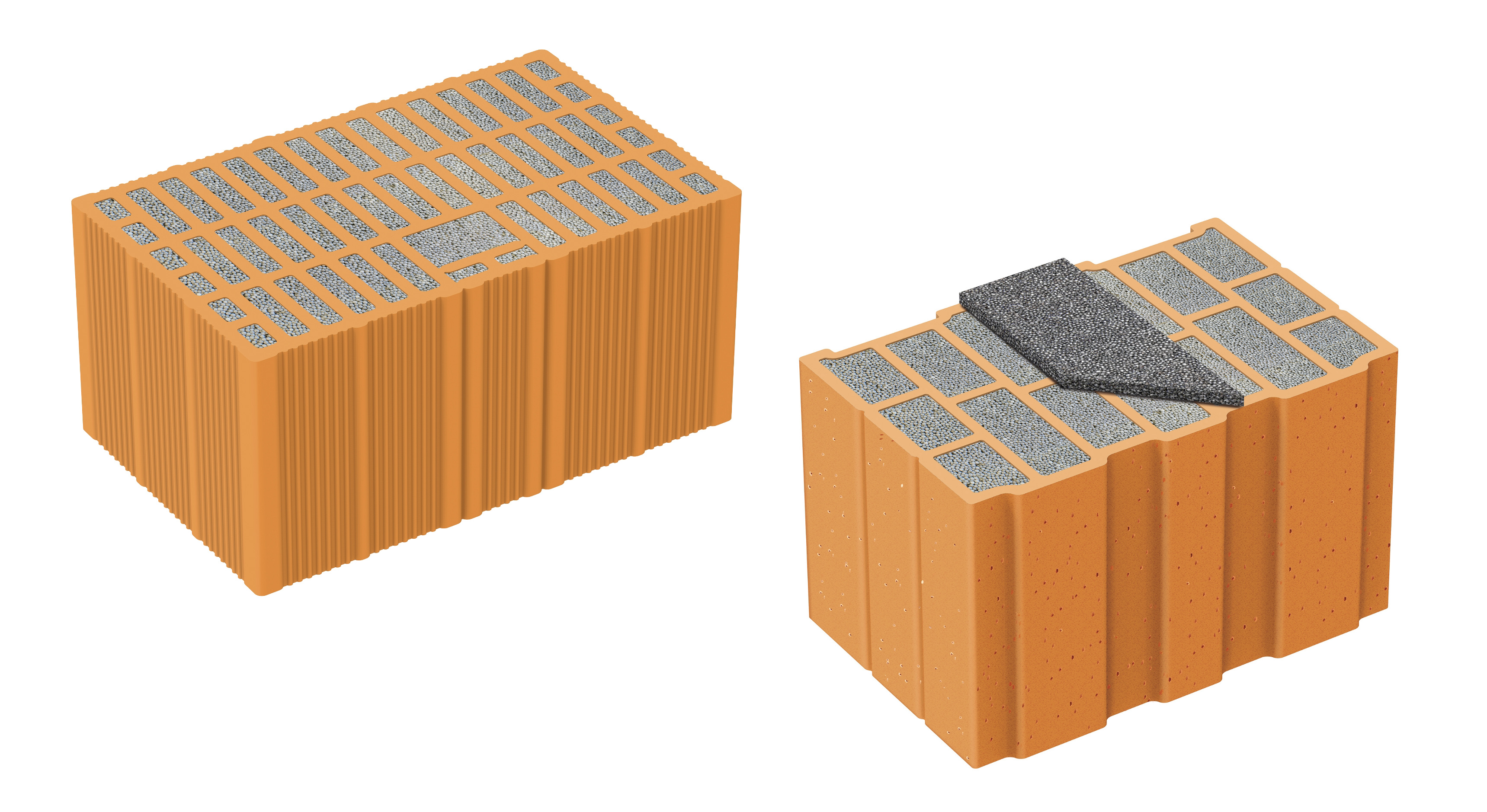 Il riempimento dei fori, con polistirene additivato con grafite Neopor di Basf, dei blocchi Normablok Più di Fornaci Laterizi Danesi, permette di unire a questa capacità l’isolamento termico, arrivando a valori di trasmittanza U = 0,14 W/m2K.