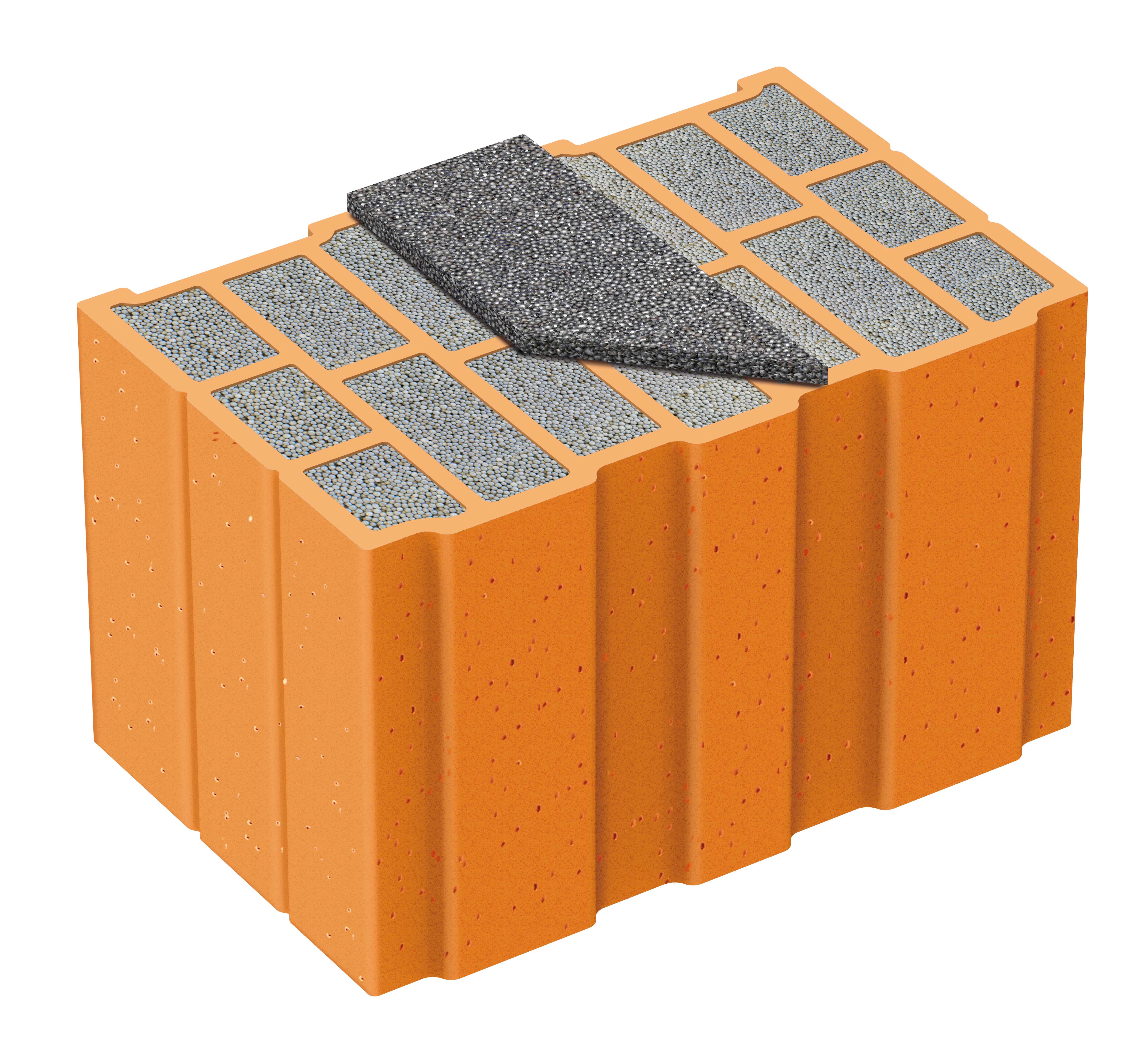 Il polistirene additivato di grafite Neopor di Basf viene inglobato direttamente all’interno del blocco e apposite fasce isolanti garantiscono l’eliminazione dei ponti termici dei giunti di malta. Protetto dall’involucro in laterizio, il polistirene additivato con grafite mantiene le proprie caratteristiche inalterate nel tempo, a garanzia di un edificio duraturo e termicamente isolato.