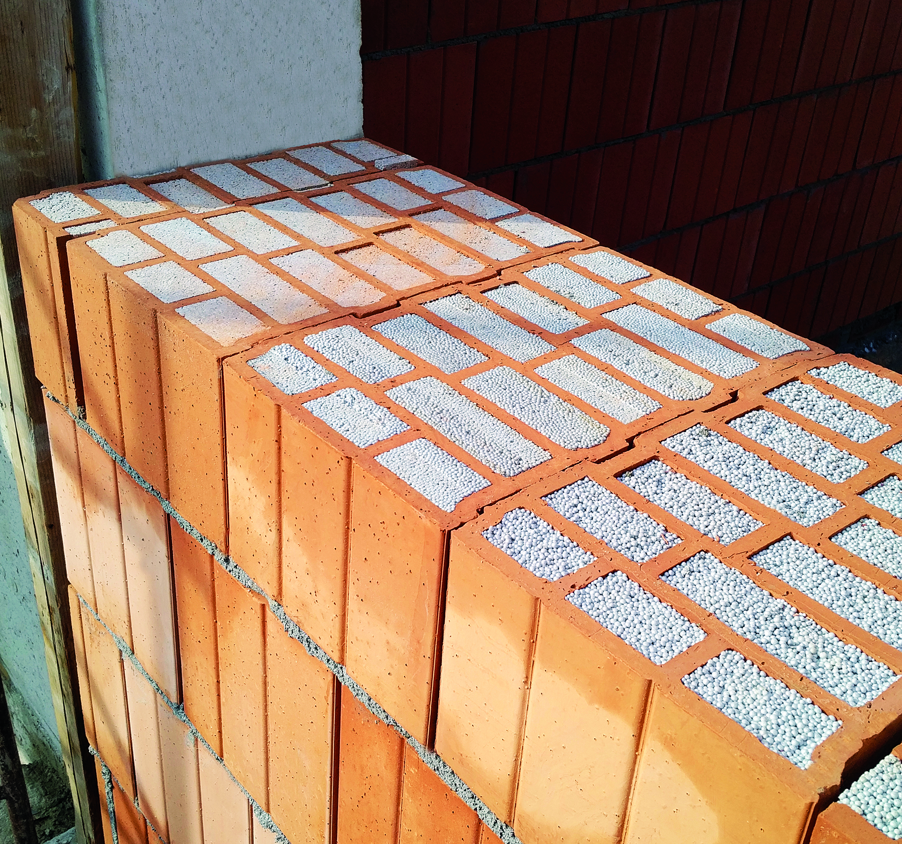 Il riempimento dei fori con polistirene additivato con grafite Neopor di Basf permette di garantire alle murature un eccellente grado di isolamento termico, arrivando ad una trasmittanza U=0,14 W/mqK mantenendo però intatte tutte le caratteristiche di traspirabilità della muratura.