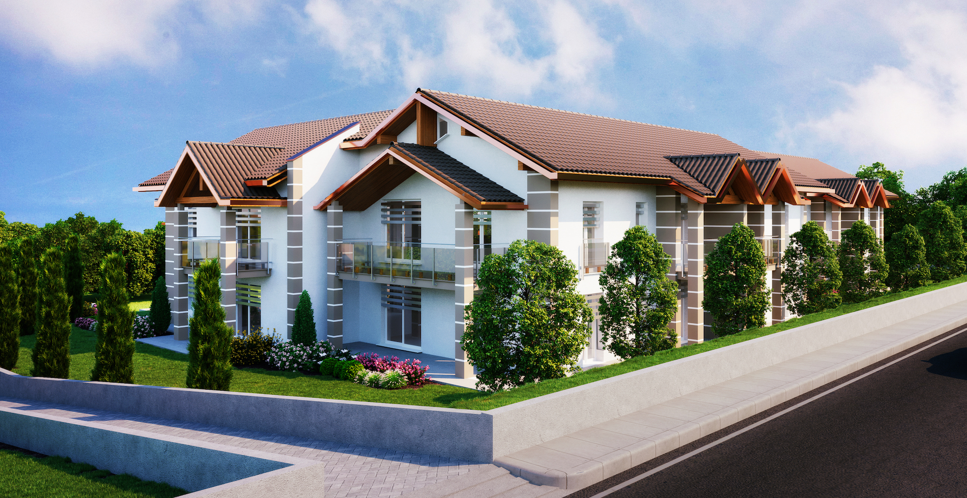 Il complesso residenziale prevede la costruzione di due edifici per un totale di dieci appartamenti di cui cinque unità al piano terra dotate di giardino e cinque al primo piano con terrazzo e balconi, entro la fine di ottobre 2021.