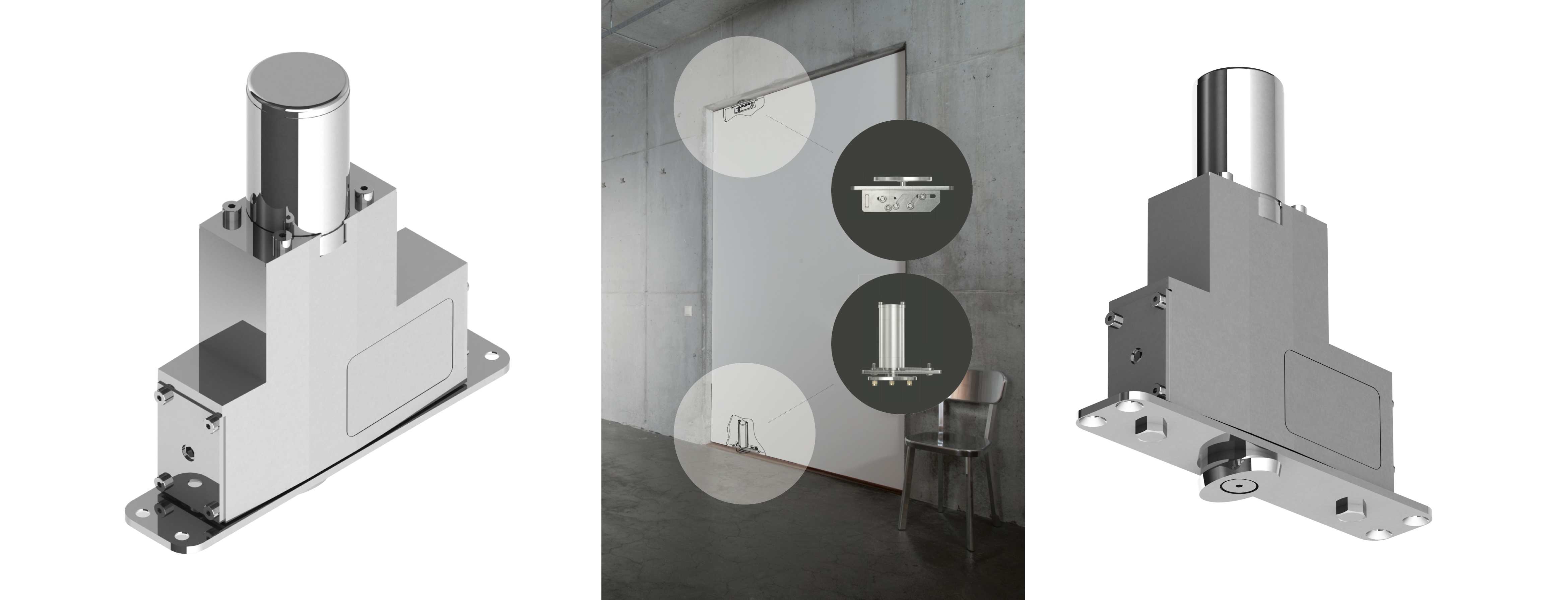 La porta a bilico di Palazzo Madama funziona in modo ottimale indipendentemente dal peso e dalle dimensioni. Il System4 di FritsJurgens è un’unità di azionamento ad alta precisione che rimane nella posizione di bloccaggio e consente la chiusura ottimale della porta. Le quattro funzioni del “motore” consentono la rotazione, la chiusura, la posizione di fissaggio a 0°, 90° e -90° e la chiusura rallentata. Le porte a bilico possono essere aperte in 2 direzioni.