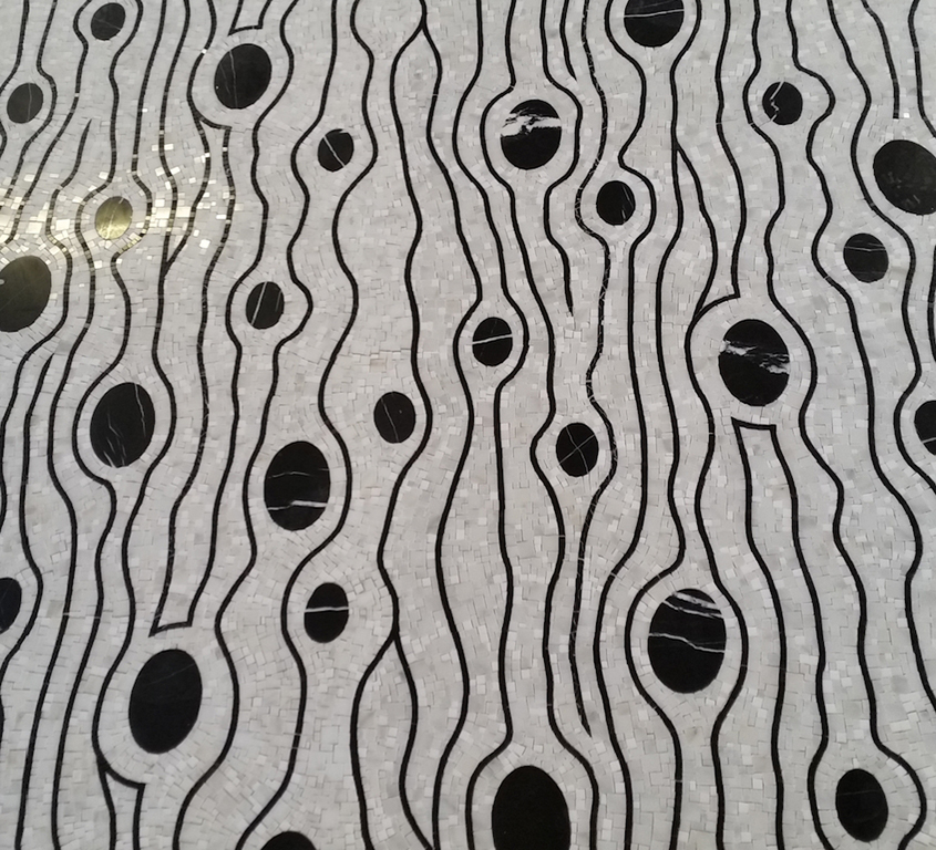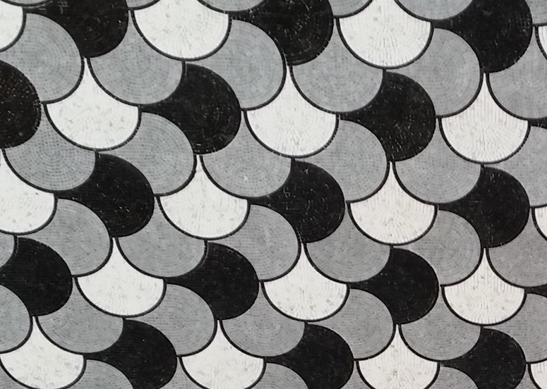 Si aggiunge alle collezioni, della Friul Mosaic, Le Geometrie, design FM Studio per Friul Mosaic, composta da tessere in mosaico e marmo mescolate fra loro con alternanza di eleganti bianchi e neri che danno vita a combinazioni optical, grazie ai materiali utilizzati come il Nero Marquinia e il Calacatta Bardiglio.