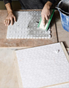 Le tessere, tagliate a mano dagli artisti di Friul Mosaic, evolvono in figure di ogni tipo: listelli, poligoni irregolari, casette, losanghe, trapezi, tutti ottenuti con una lavorazione prevalentemente manuale. La stuccatura diventa parte integrante della composizione e la fuga, come elemento progettuale, dialoga con le tesserine, spezzando e ricomponendo il ritmo della texture per creare combinazioni cromatiche e motivi geometrici.