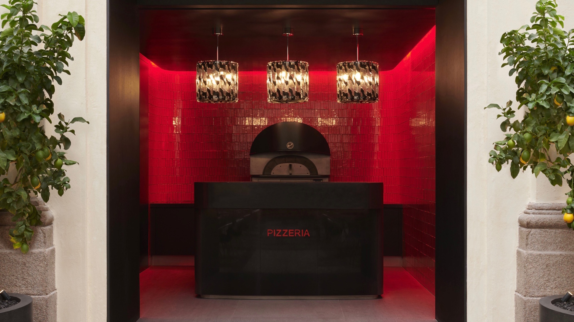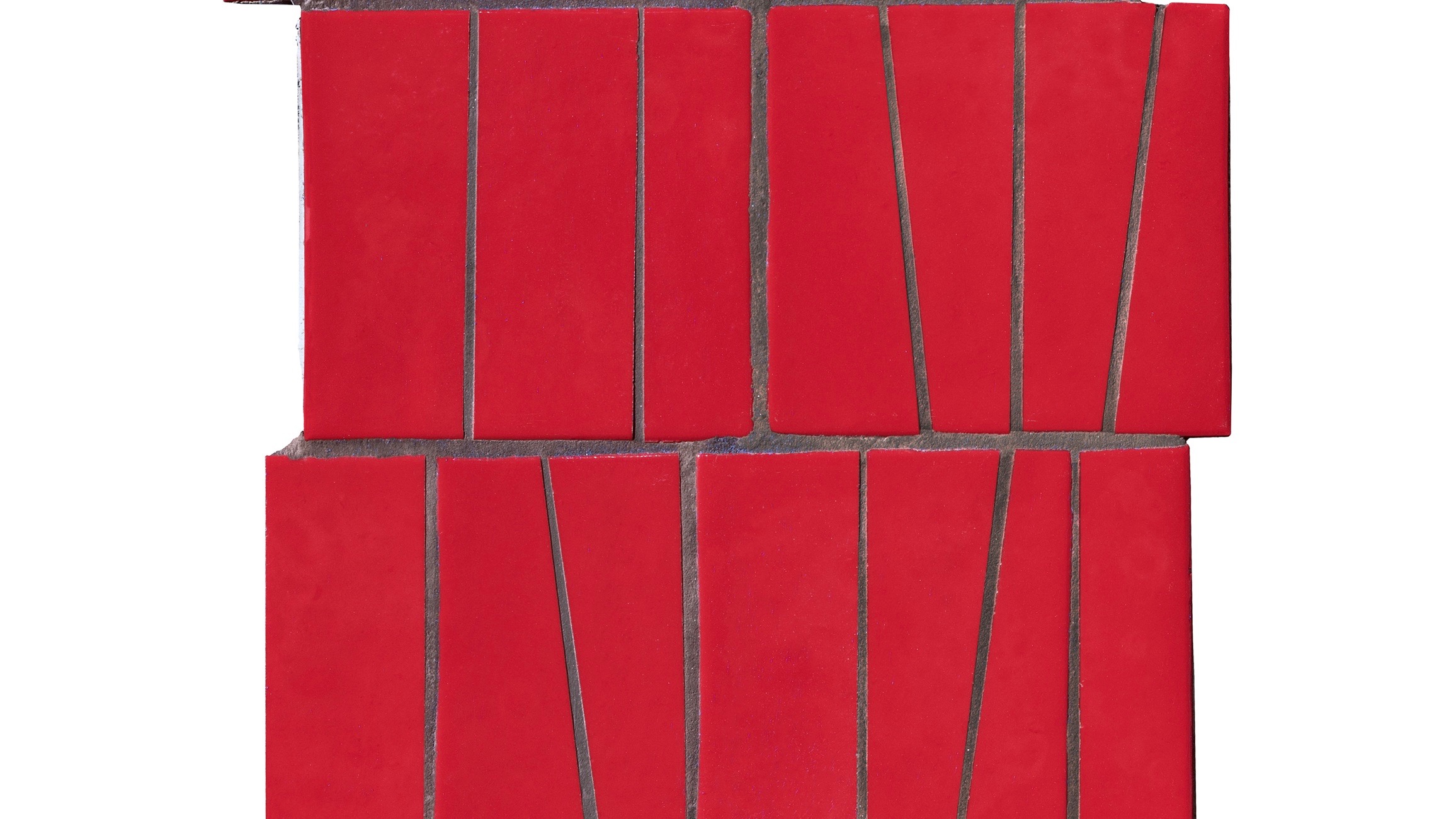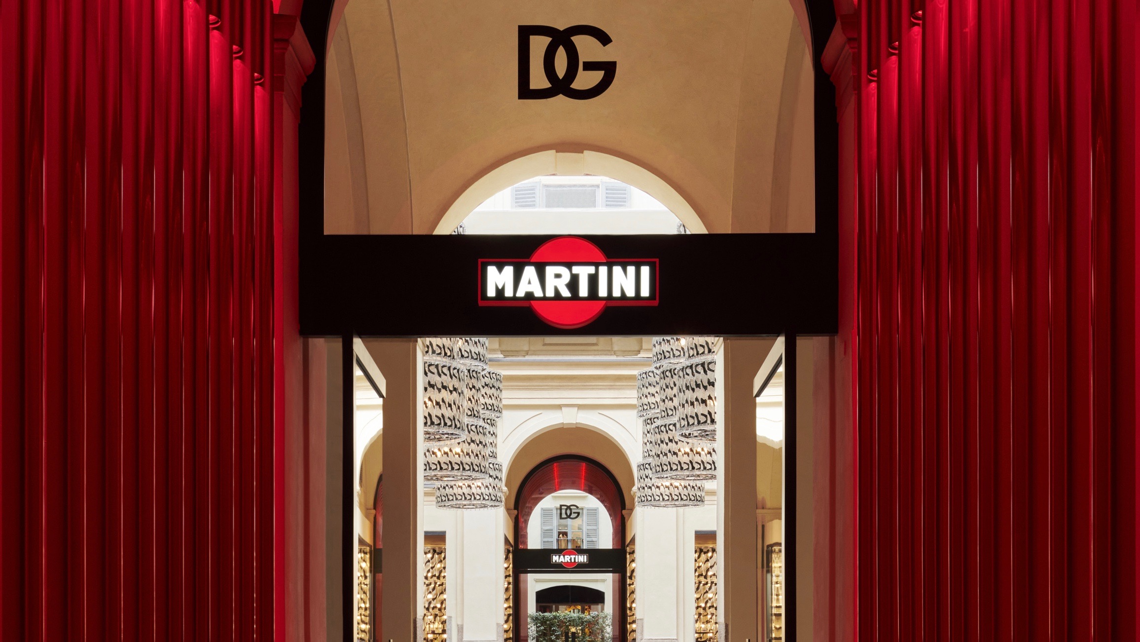 L’inconfondibile rosso Martini, infatti, viene esaltato da 25 metri quadri di tessere in smalto veneziano, tagliate a mano in dimensioni diverse di circa 10 cm di altezza, e realizzate per Friul Mosaic da Smalti Morassutti.