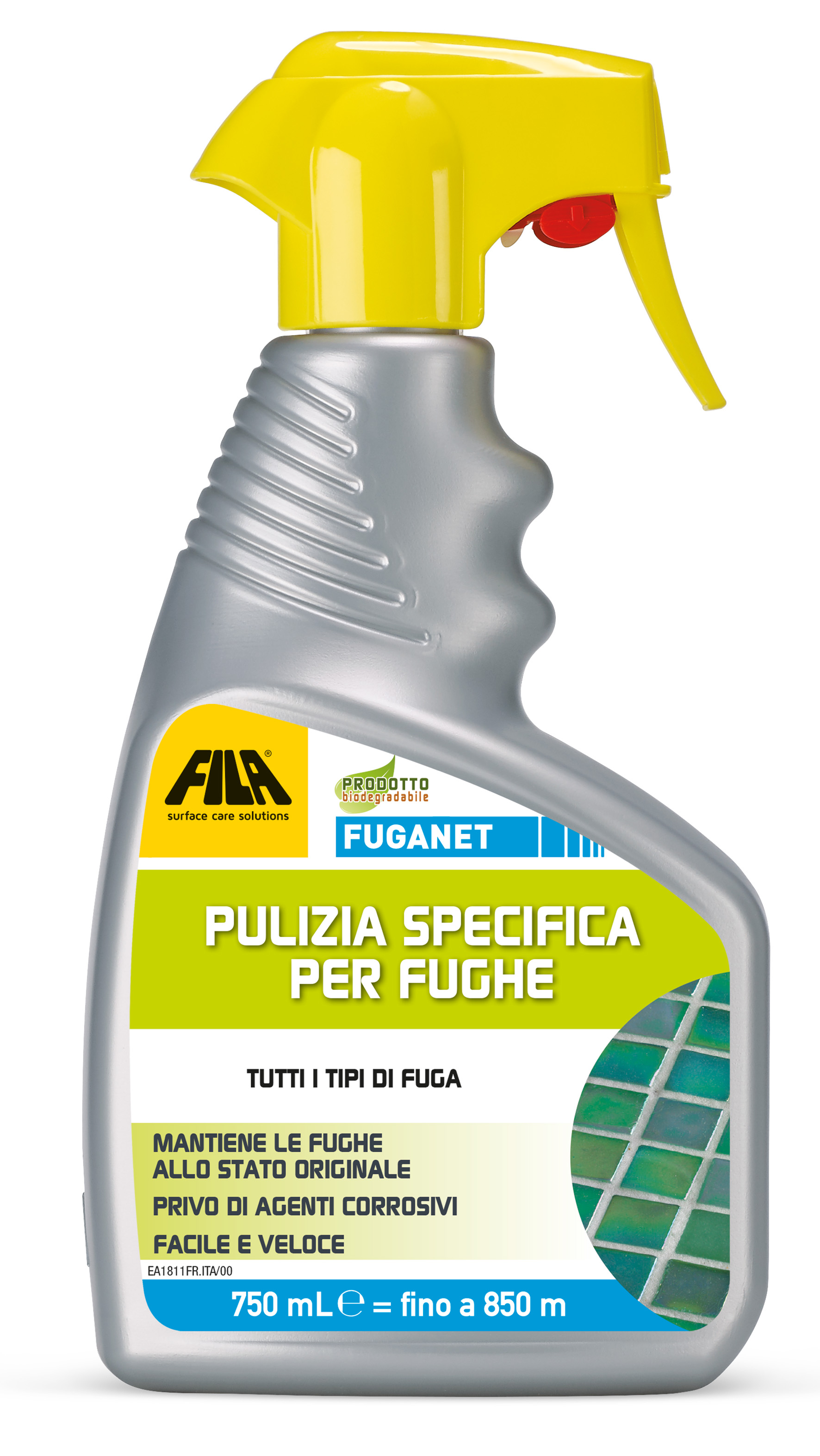 Fuganet, invece, è il detergente specifico per la pulizia di fondo delle fughe di pavimenti e rivestimenti ceramici: monocottura, bicottura, gres porcellanato con la sola esclusione dei tipi assorbenti trattati a cera. Facile da usare, è un prodotto biodegradabile che non aggredisce né intacca la piastrella. Non contiene acidi né ipoclorito di sodio ed è di facile uso.