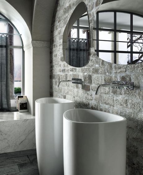 Un’altra caratteristica è l’inedita combinazione tra i contorni naturali e tondeggianti dell’elemento vasca e del piatto doccia e la solida razionalità architettonica del monolite che li completa, squadrato e rigoroso, rivestibile con infinite varietà di finiture e materiali e installabile in molteplici ambienti, per una perfetta integrazione con il progetto in cui si inserisce.