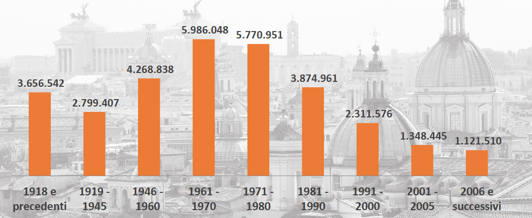Lo stock residenziale da solo necessiterebbe di oltre 65,2 miliardi di euro per riqualificare tutto lo stock realizzato tra il dopoguerra e il duemila, corrispondente a oltre 17,2 milioni di immobili.