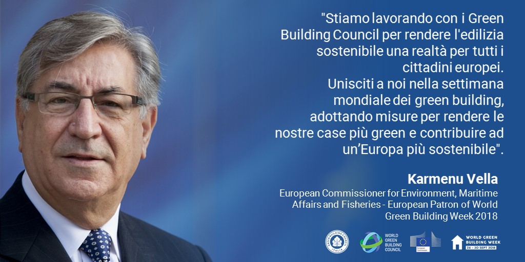 La settimana mondiale dei green building è patrocinata dalla Commissione Europea e ha come padrino Karmenu Vella, Commissario per l’ambiente, gli affari marittimi e la pesca.