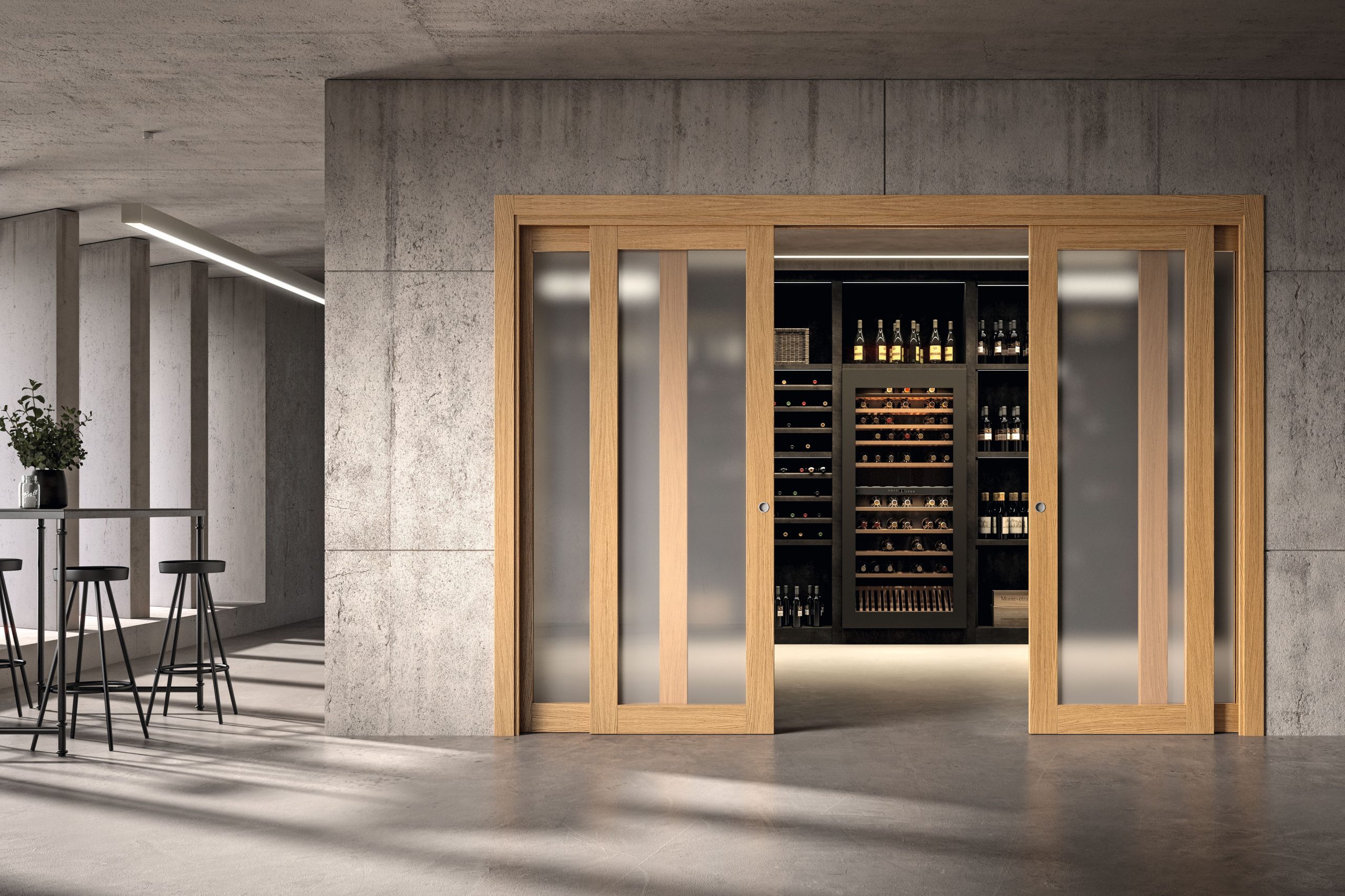 La stessa vocazione architettonica caratterizza il grande scorrevole a scomparsa con 4 ante della collezione Orion dello stesso catalogo.