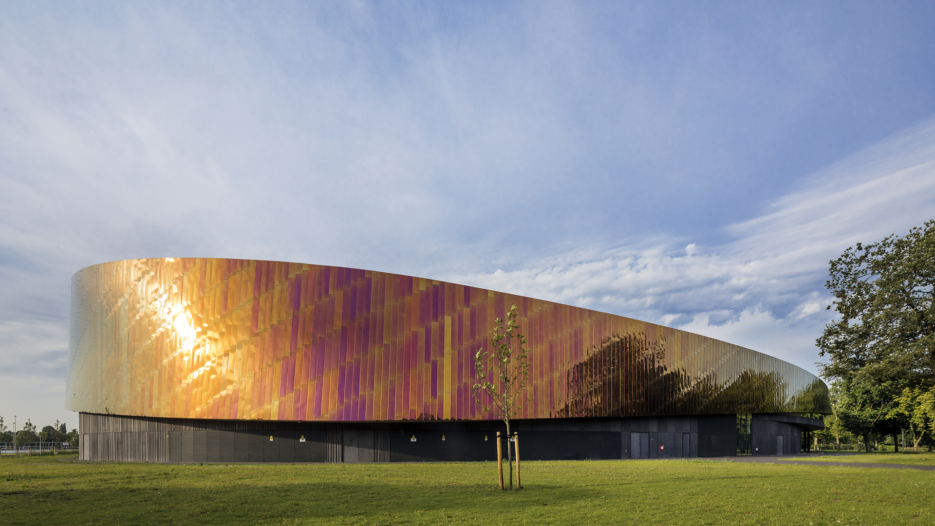 Situato sul sito dell’ex stadio Ado Den Haag a L’Aia, un nuovo complesso sportivo destinato a diverse attività con facciata mutevole sta attirando molta attenzione. Lo sportcampus Zuiderpark si caratterizza per la spettacolare fascia di pannelli scintillanti di metallo che si estende intorno alla nuova struttura, il cui riflesso dà l’impressione di movimento.
