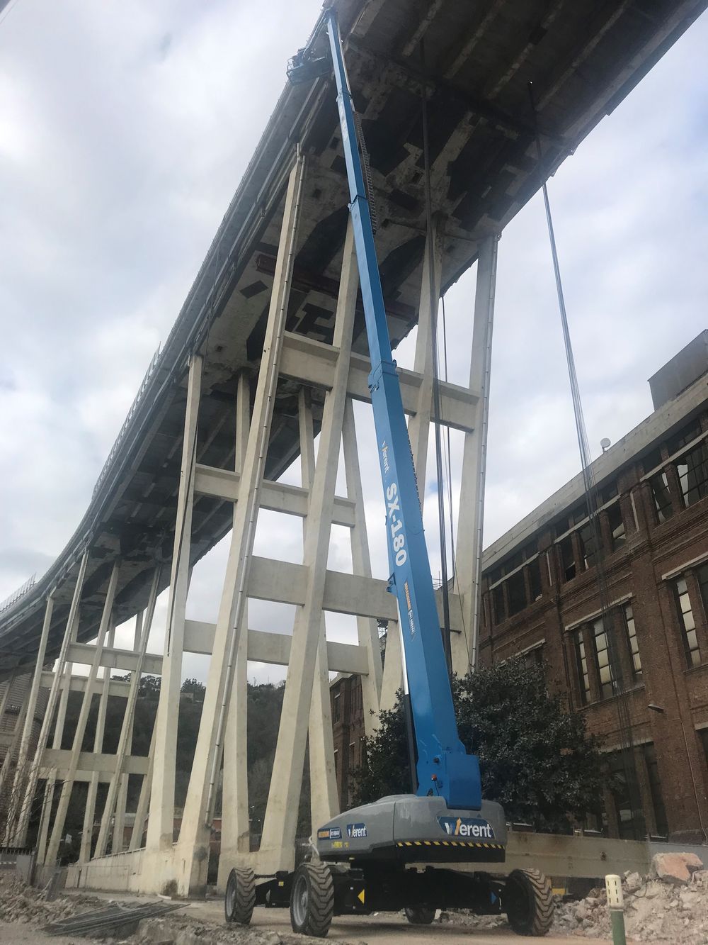Il cantiere del Ponte Morandi di Genova è ormai quasi sgombero dei detriti da demolizione e si stanno contemporaneamente iniziando le prime fasi per la ricostruzione della parte crollata. Werent ha fornito due piattaforme a braccio telescopico Genie SX-180, acquistate da Cte spa, impegnate da mesi nell’importante e delicato compito di smantellare la struttura del ponte.