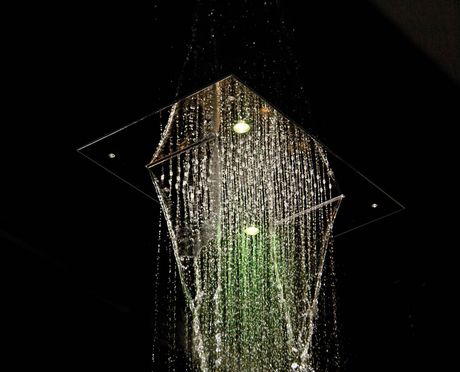 Forme geometriche essenziali per due prodotti diversi per dimensioni e funzioni: il primo, di forma quadrata, è dotato di un getto a pioggia al centro e 8 getti che nebulizzano l’acqua per un effetto rinfrescante; il secondo, di forma rettangolare, si caratterizza per 2 lame con getti a cascata che, convergendo al centro, creano un rigenerante effetto vitalizzante.