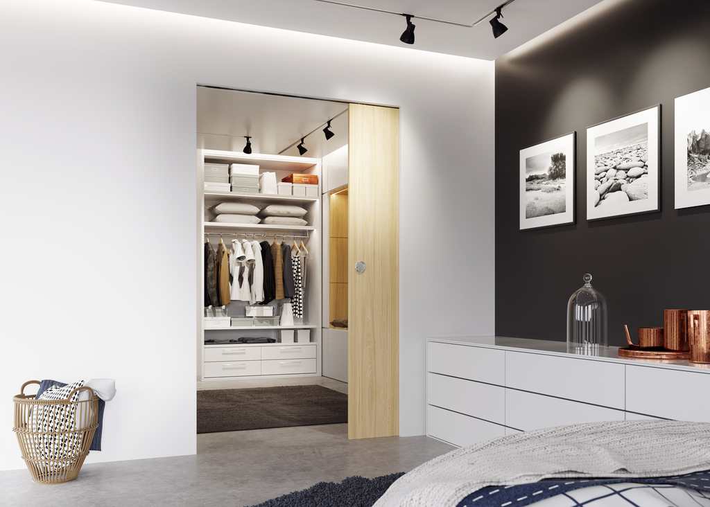 Rollan NT è una soluzione ideata da Geze per la movimentazione di porte scorrevoli manuali interne – utilizzabile ad esempio per pareti divisorie o per cabine armadio -da 40 o 80 kg.