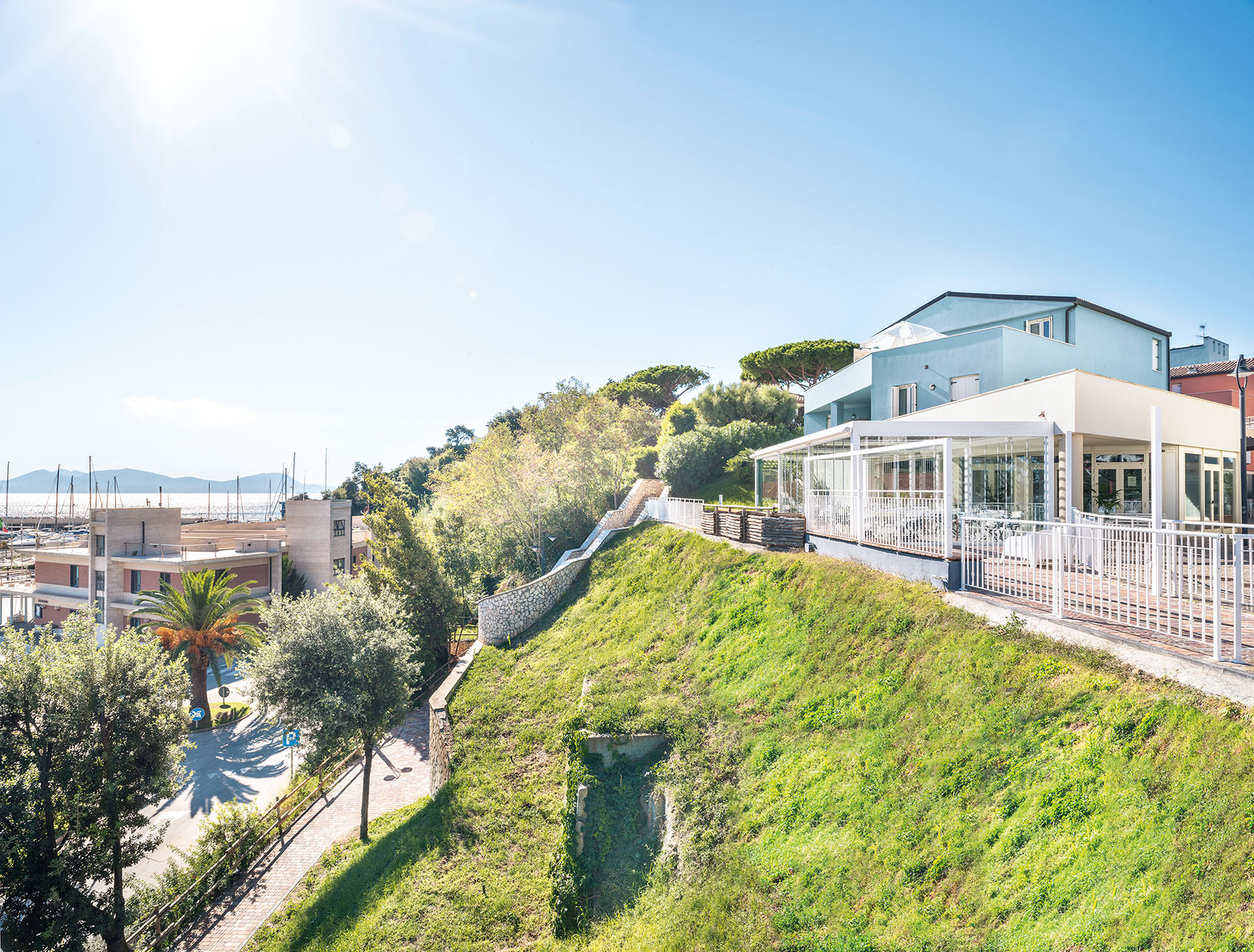 Come commenta il contitolare del ristorante Francesco Assirelli: «Dalla terrazza, esposta a meridione verso Marina di Salivoli, abbracciamo il sole dall’alba al tramonto. Grazie alla pergola E-Twist di Gibus, che ci permette di accogliere i nostri ospiti in ogni stagione e in ogni momento della giornata, davanti alla sconfinata bellezza del paesaggio, abbiamo reso il panorama e la luce parti integranti del nostro progetto, assieme ai migliori frutti del mare e della terra che proponiamo con i nostri menu».