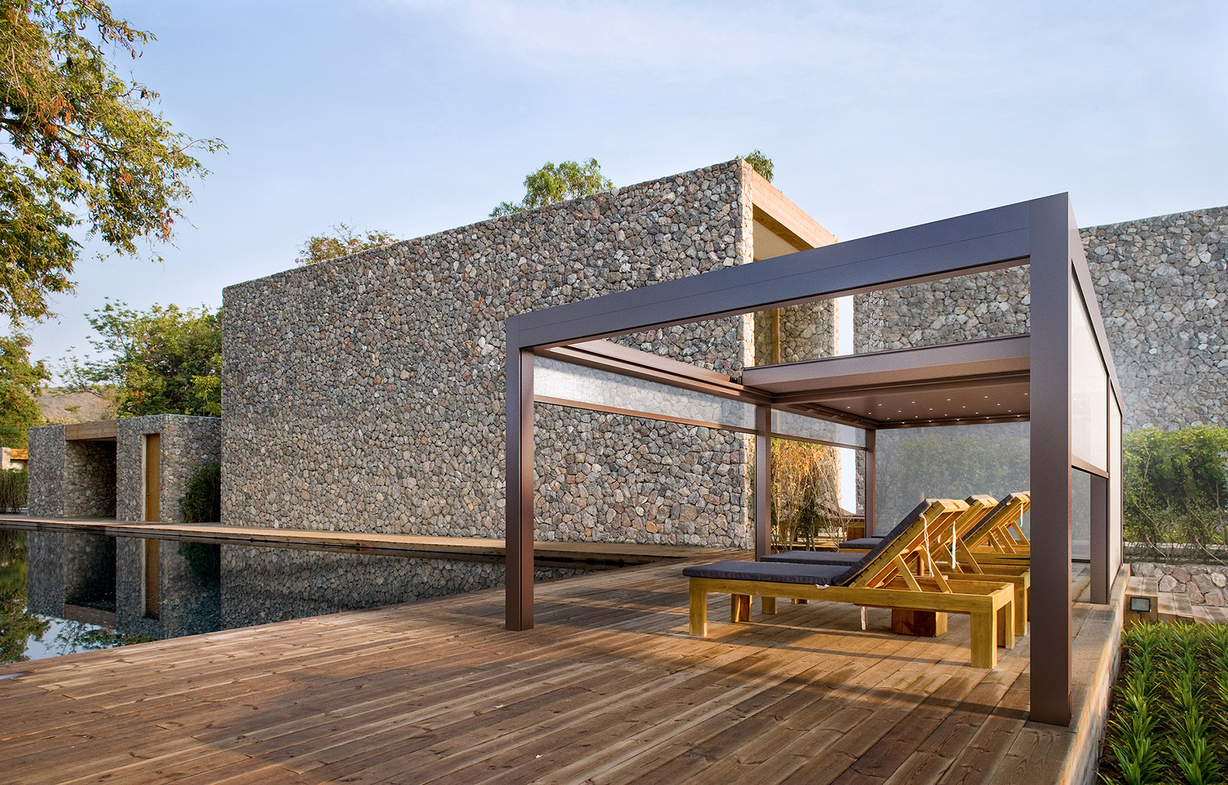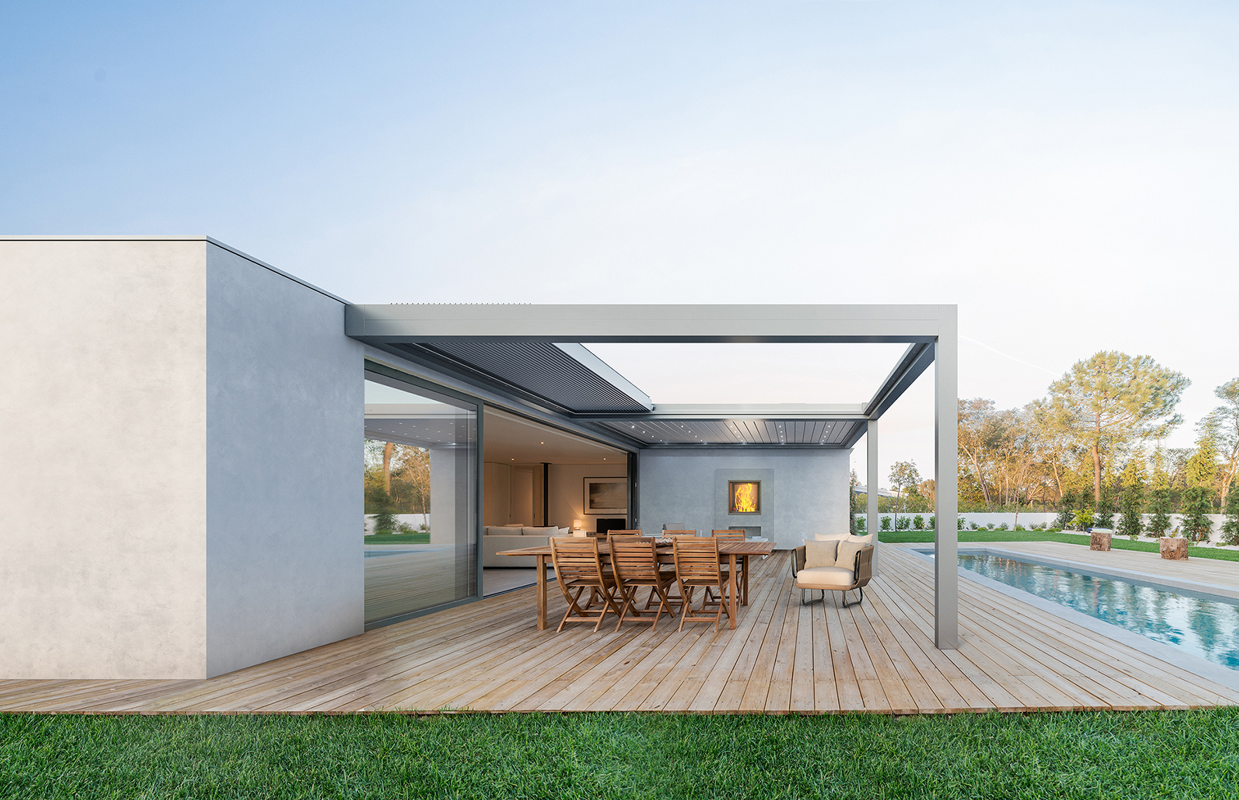 Progettata, come tutte le soluzioni Gibus, per aumentare la qualità della vita delle persone, questa nuova linea può essere inoltre impreziosita da una serie di comfort d’eccezione, a partire dal sistema di illuminazione a LED con luce bianca o colorata, per vivere la pergola anche di sera, fino ai riscaldatori, o all’impianto audio, azionabile tramite connessione bluetooth.