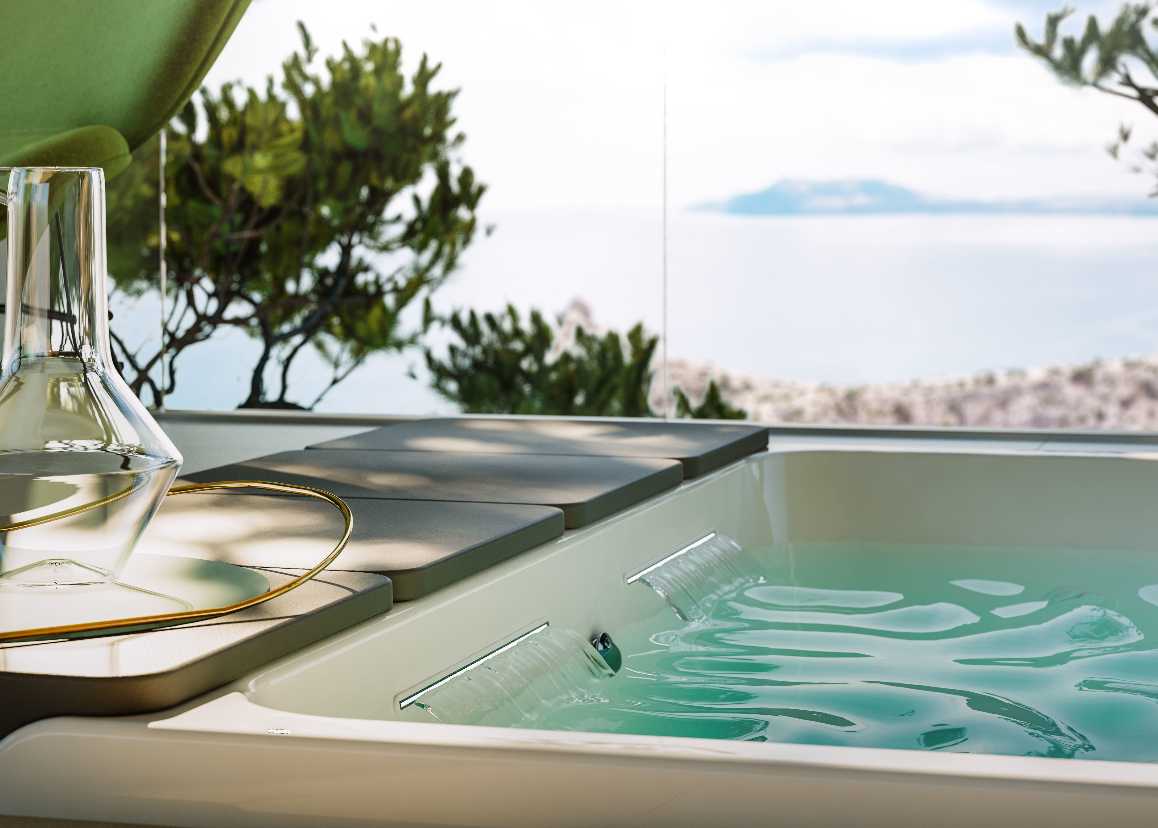 Le minipiscine si riempiono in fretta e alla temperatura preimpostata grazie alla rubinetteria termostatica a scomparsa: il relax viene garantito grazie al sistema di rabbocco automatico, che mantiene costante il livello dell’acqua per un benessere totale.