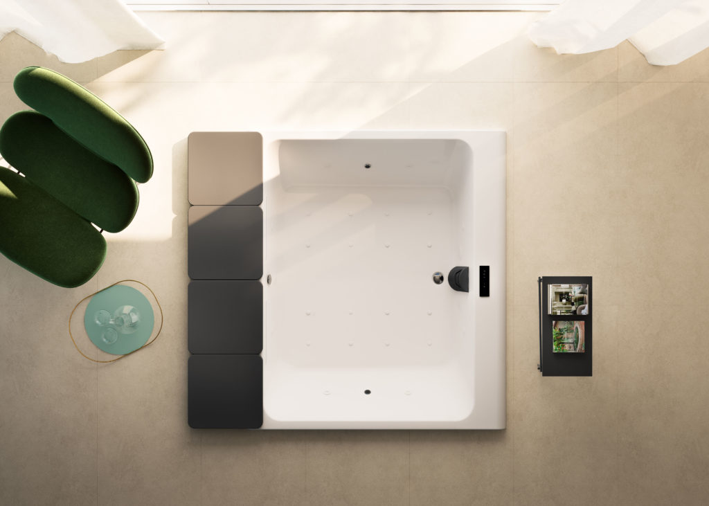 La versione in appoggio con pannellatura è arricchita di una luce perimetrale emozionale, che crea nell’ambiente un’atmosfera intima e rilassante.