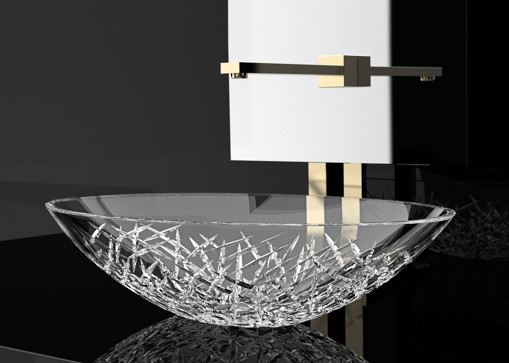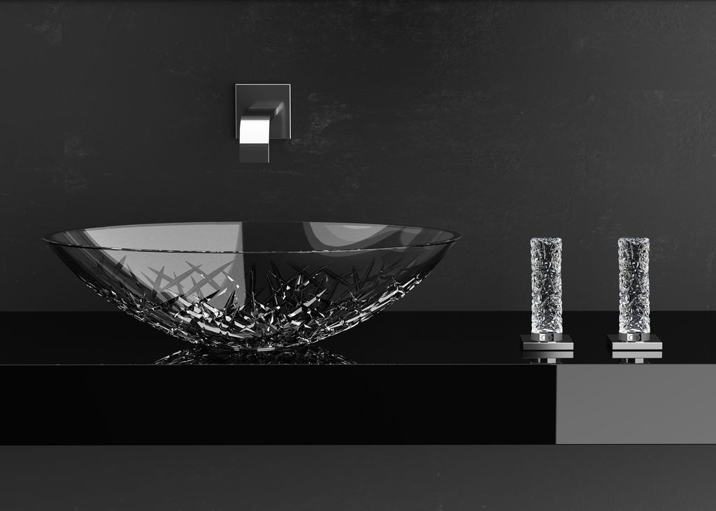 Pensato per arredare le sale da bagno più eleganti e raffinate come una vera e propria opera d’arte, il cristallo nel quale è prodotto il bacino, caratterizzato da particolari lavorazioni della base, viene soffiato a bocca e molato a pietra con abilità dai maestri vetrai secondo le più antiche e nobili arti vetrarie.