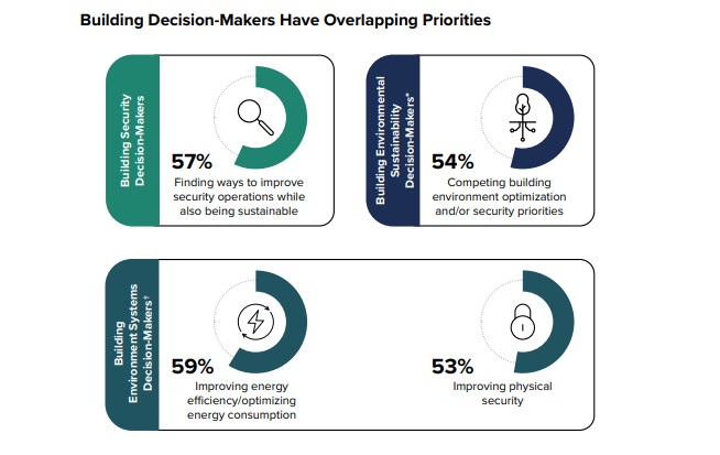 La sostenibilità è sempre più importante per tutte le funzioni aziendali. Confrontando le risposte di responsabili dei sistemi di sicurezza, sostenibilità e ambiente dei building, tutti si sono concentrati sul miglioramento dell’efficienza delle operazioni e sulla sostenibilità.