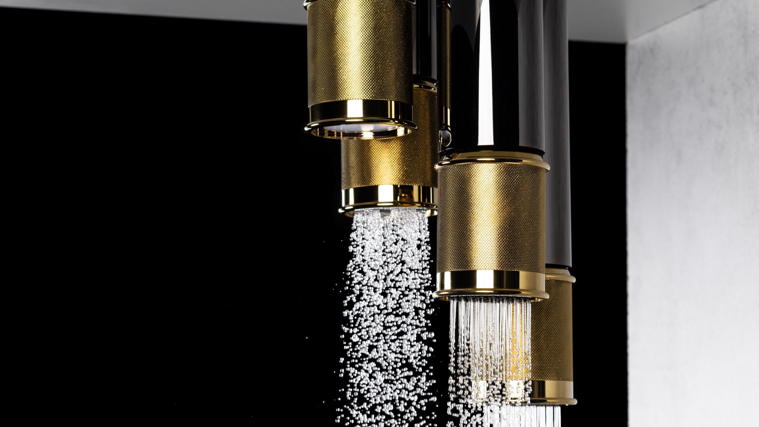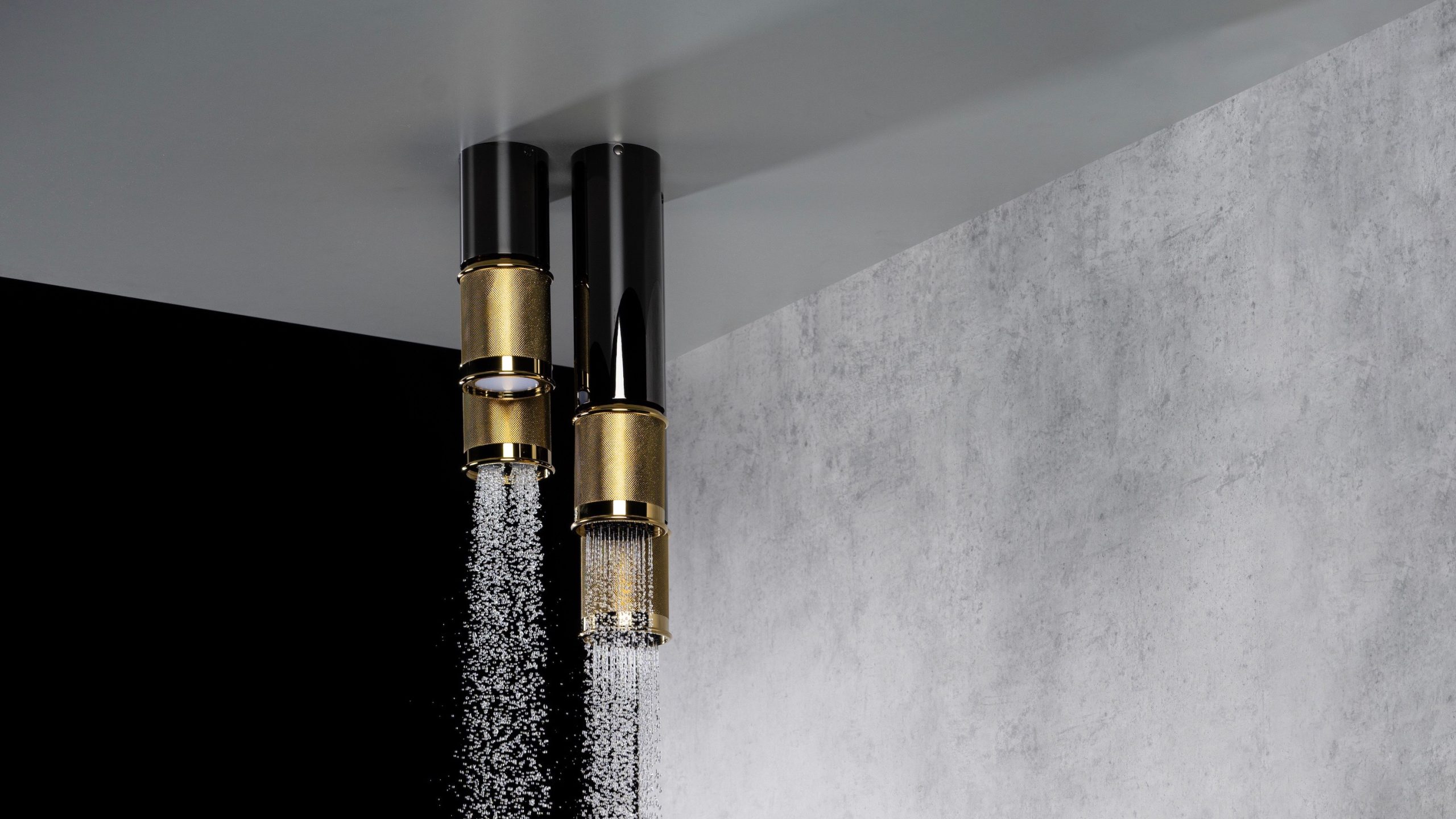 Soffioni doccia cilindrici girevoli, impreziositi da una texture zigrinata, creano un affascinante gioco di luce, mentre l’ergonomia avanzata garantisce massimo comfort e funzionalità.