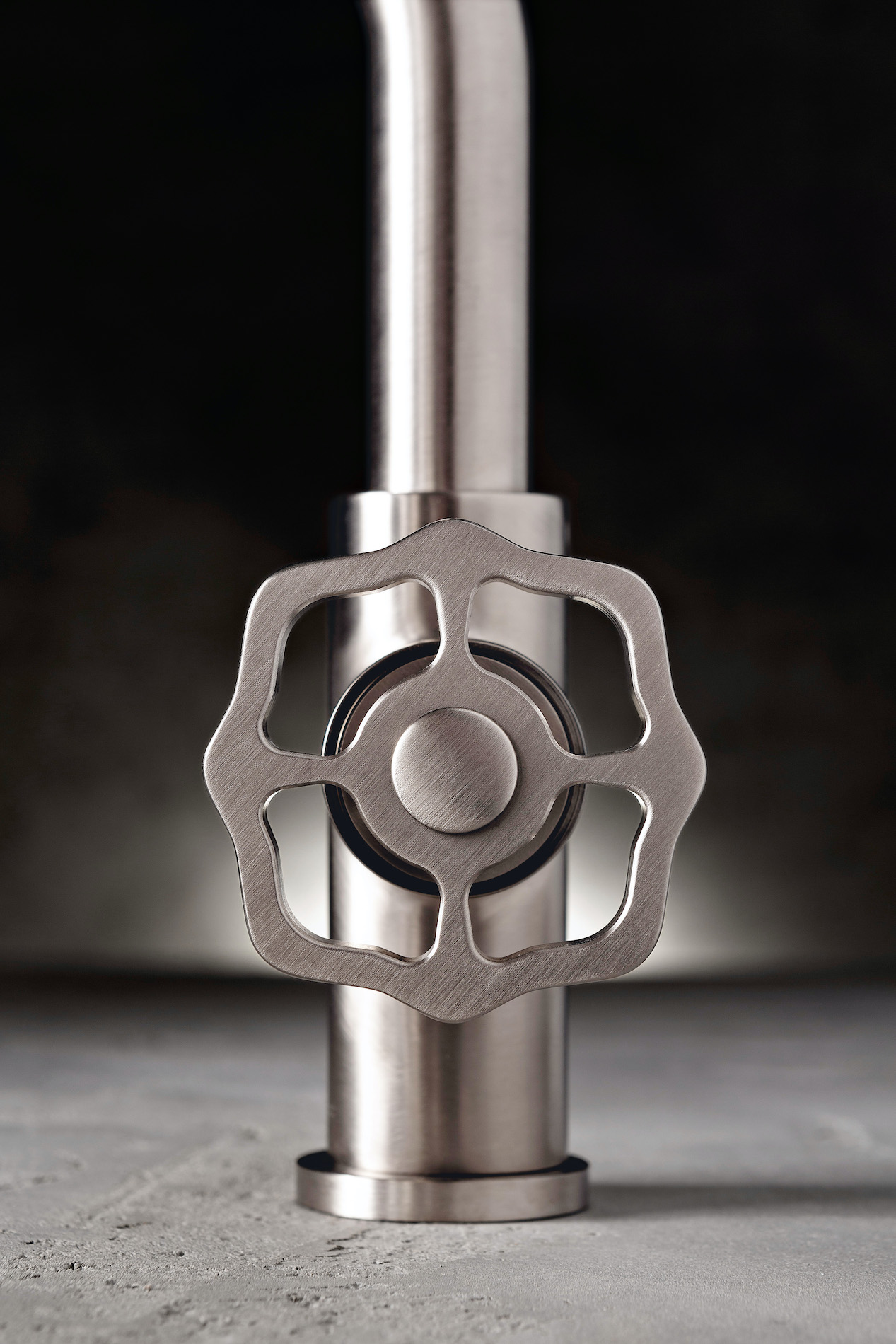 La versione in nickel spazzolato, che con una sfumatura leggermente più calda del tradizionale cromo ricorda l’acciaio, si adatta perfettamente ad ambienti di stile industriale. Ottenuta con processo galvanico, questa finitura è particolarmente resistente