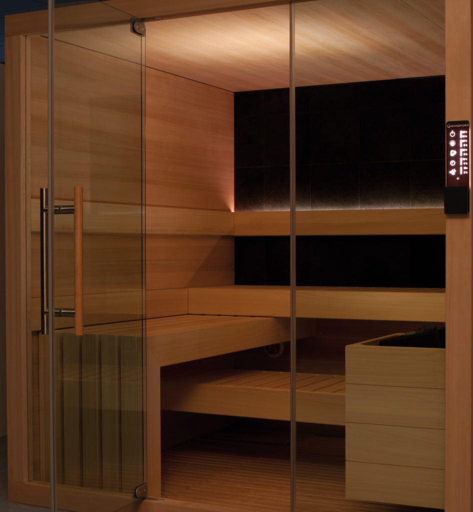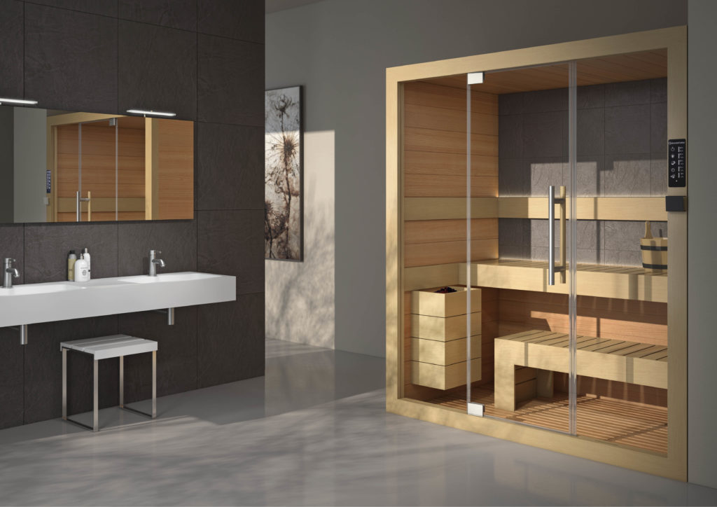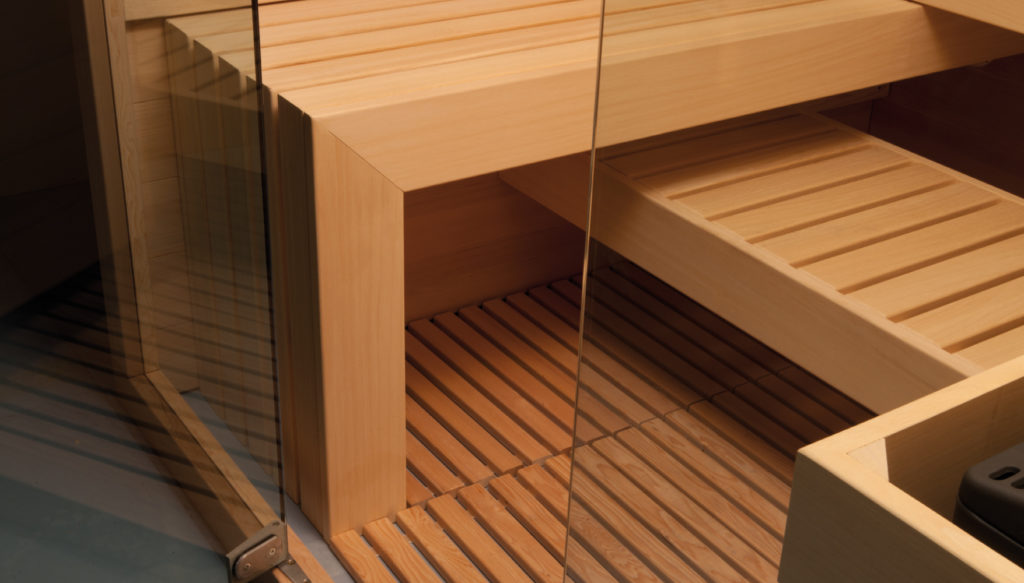 - Haloterapia: possibilità di inserire nella sauna speciali pannellature di sale iodato che coniugano proprietà curative e spettacolari effetti luminosi. L’aria salina inalata fa bene ai polmoni, migliora la respirazione e ha un effetto benefico in presenza di problemi di asma e allergie ed è inoltre un trattamento depurativo per la pelle.