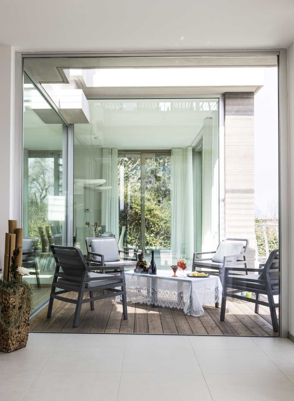 L’ampiezza delle parti vetrate assicura la luminosità degli ambienti. Il sistema è centrato sulla tecnologia Fibex Inside, il materiale composito Fibex garantisce agli scorrevoli un isolamento elevato (Uw sino a 0,80 W/m²K) e resistenza meccanica pur mantenendo ingombri visivi ridotti.