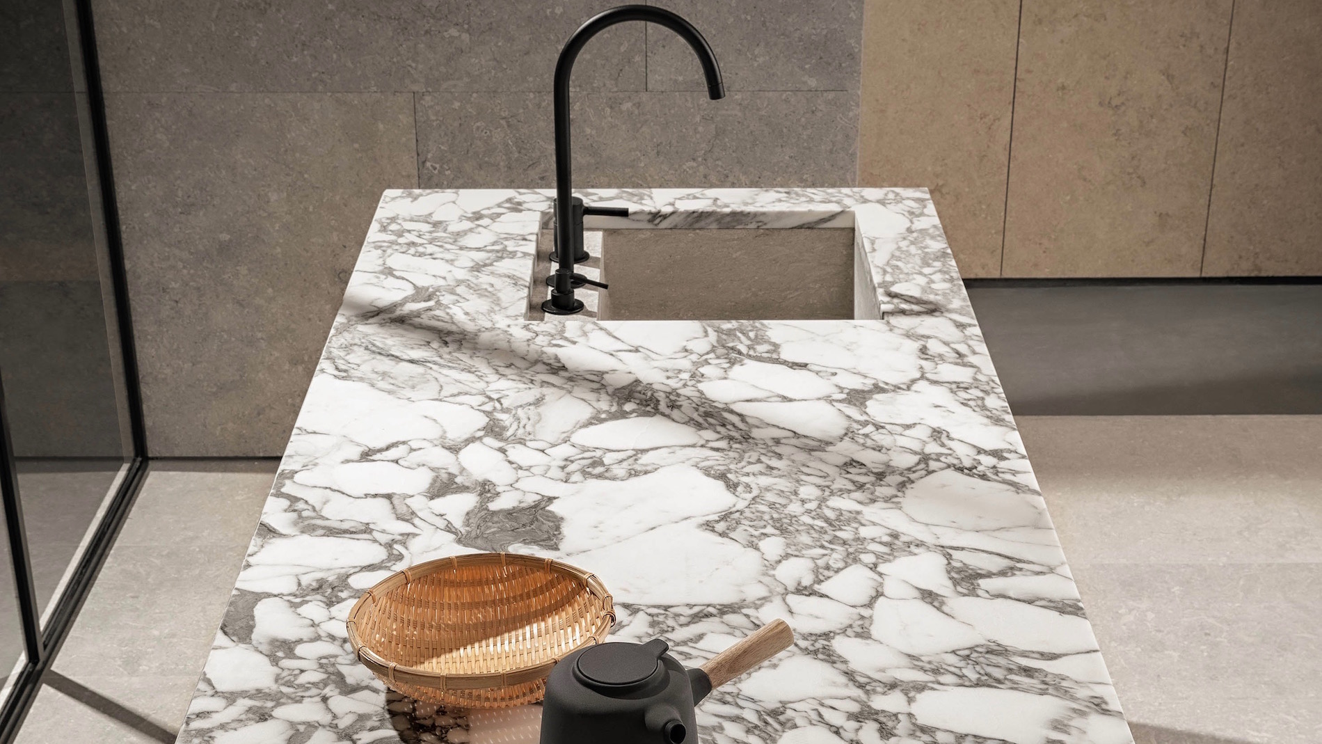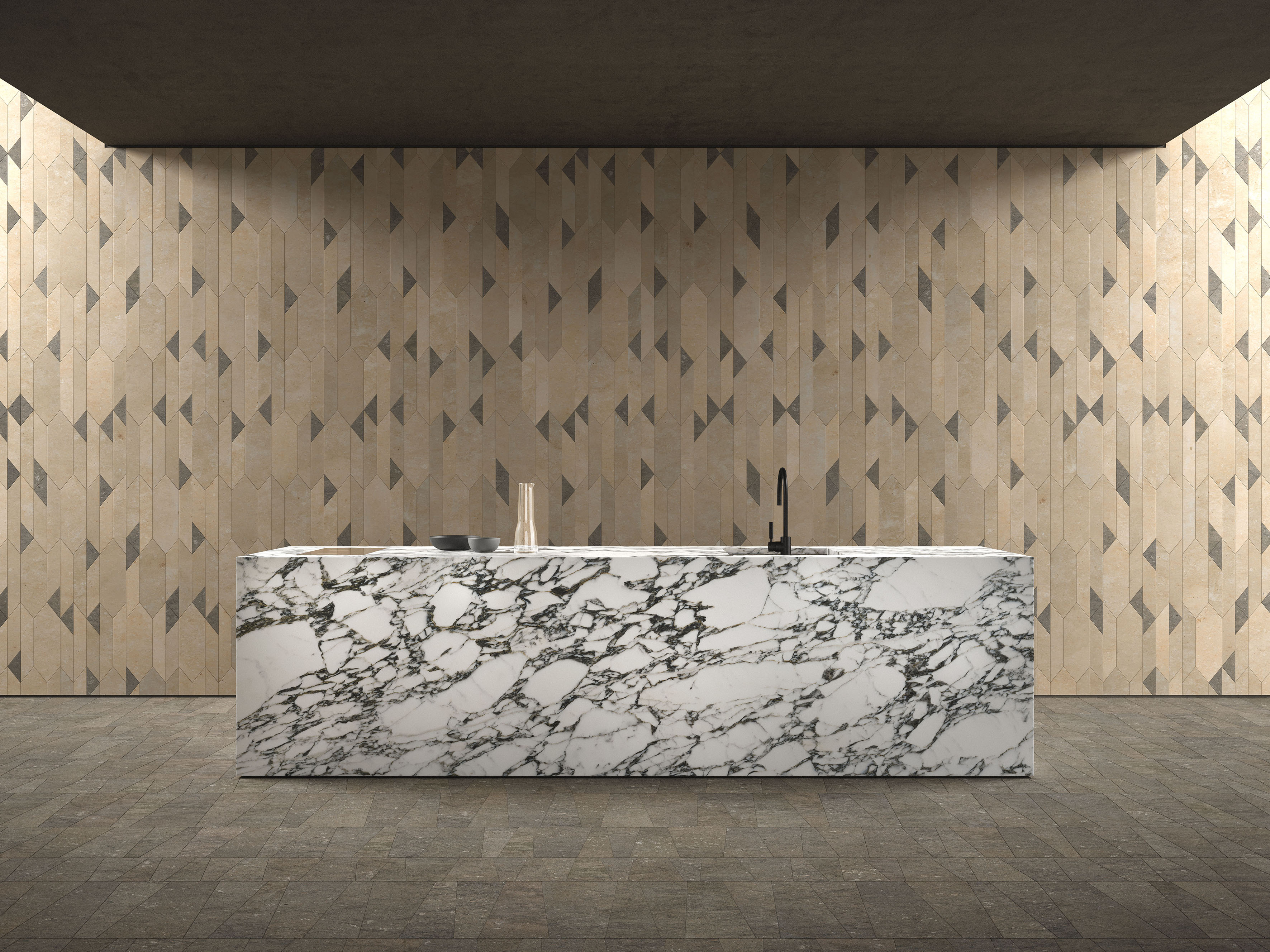 Gorgona, il cui nome deriva dalla più piccola isola dell’Arcipelago Toscano, è la nuova cucina a isola in pietra e marmo di Grassi Pietre. Gorgona è caratterizzata da top e rivestimento in Arabescato Corchia e ante in pietra alleggerita in Pietra di Vicenza nella sua declinazione Grigio Alpi.