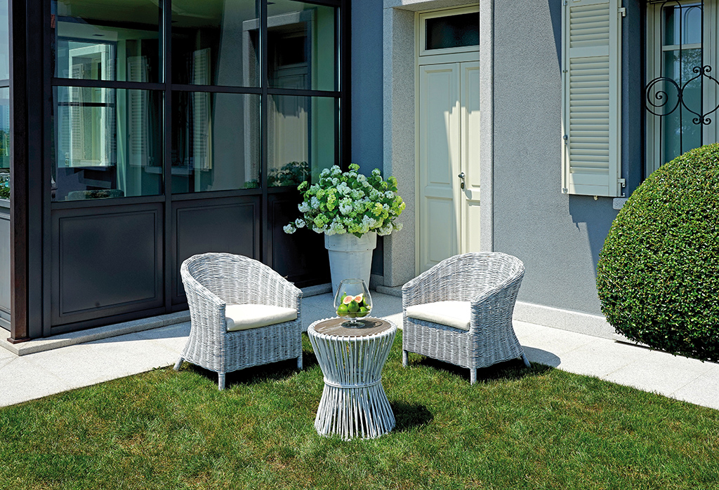 Il nuovo set di Greenwood si compone di due accoglienti poltrone e di un tavolino la cui particolarità si esprime soprattutto attraverso i materiali utilizzati, come il raffinato grey Kubo sbiancato utilizzato per la struttura del set, e il legno di mango con cui è stato realizzato il piano del tavolino. Inoltre, le avvolgenti poltroncine sono fornite di morbidi cuscini in policotone  écru.