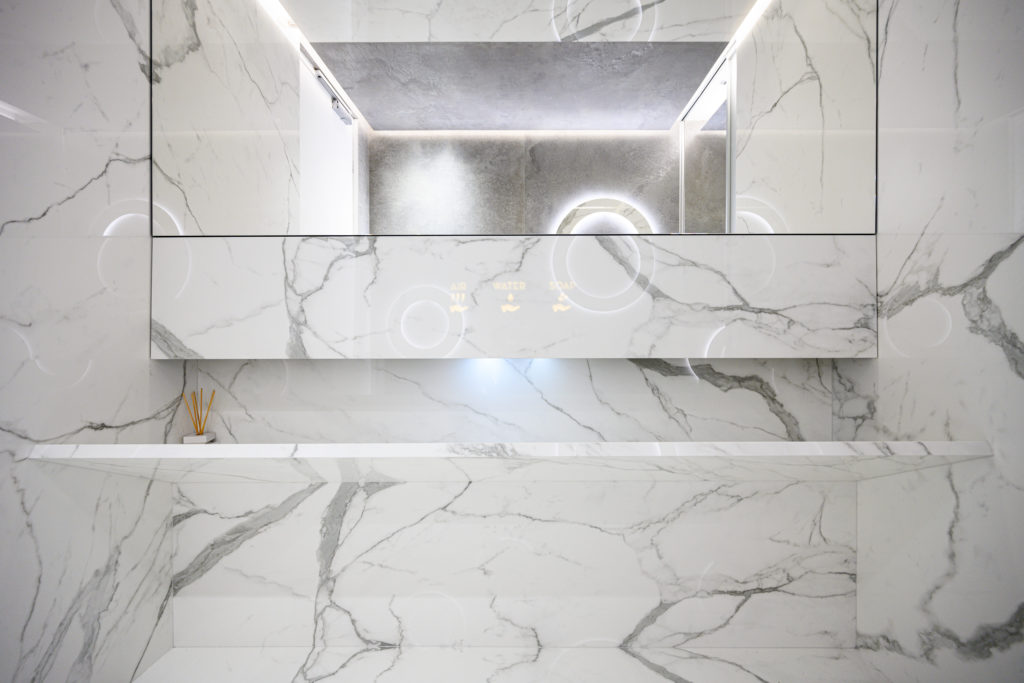 Capace di abbracciare le esigenze di ogni stile architettonico e destinazione d’uso, Bianco Statuario di Ariostea permette anche la possibilità di rispondere a specifiche esigenze progettuali quali la creazione di top cucina, lavabi, quinte, tavoli, ante ed arredi custom-made.