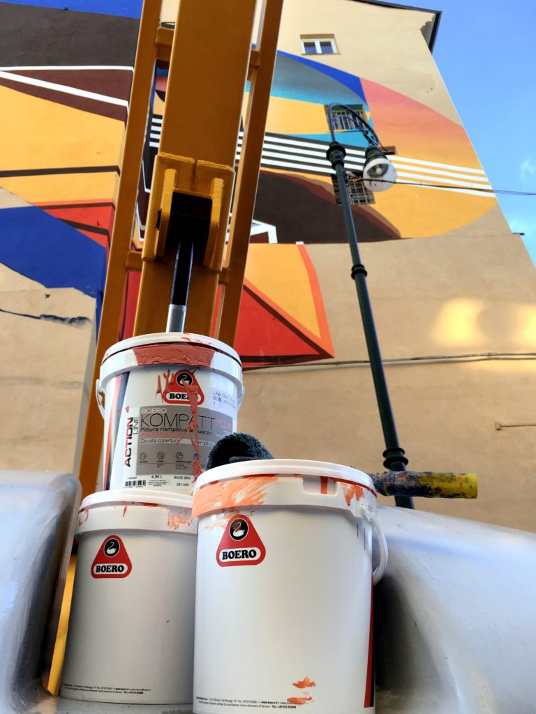 Gruppo Boero ha partecipato attivamente all’iniziativa mettendo a disposizione i propri tecnici per valutare i supporti e, insieme alla Fondazione Contrada Torino Onlus che coordina gli aspetti tecnici e operativi della realizzazione dei murales, identificare in base alla tipologia e alle condizioni della superficie i cicli per esterno più idonei alla realizzazione delle opere, dai fondi di preparazione alle finiture. Il fondo di preparazione individuato per queste prime quattro opere è il Fondo di Collegamento 0.3, mentre per le finiture sono stati selezionati 2 prodotti: Boero Kompatt Plus, una pittura riempitiva al quarzo antialga e Litosil, un rivestimento minerale a base di silicato di potassio, il prodotto più indicato nel restauro e nella manutenzione di edifici storici o di rilevanza artistica e architettonica.