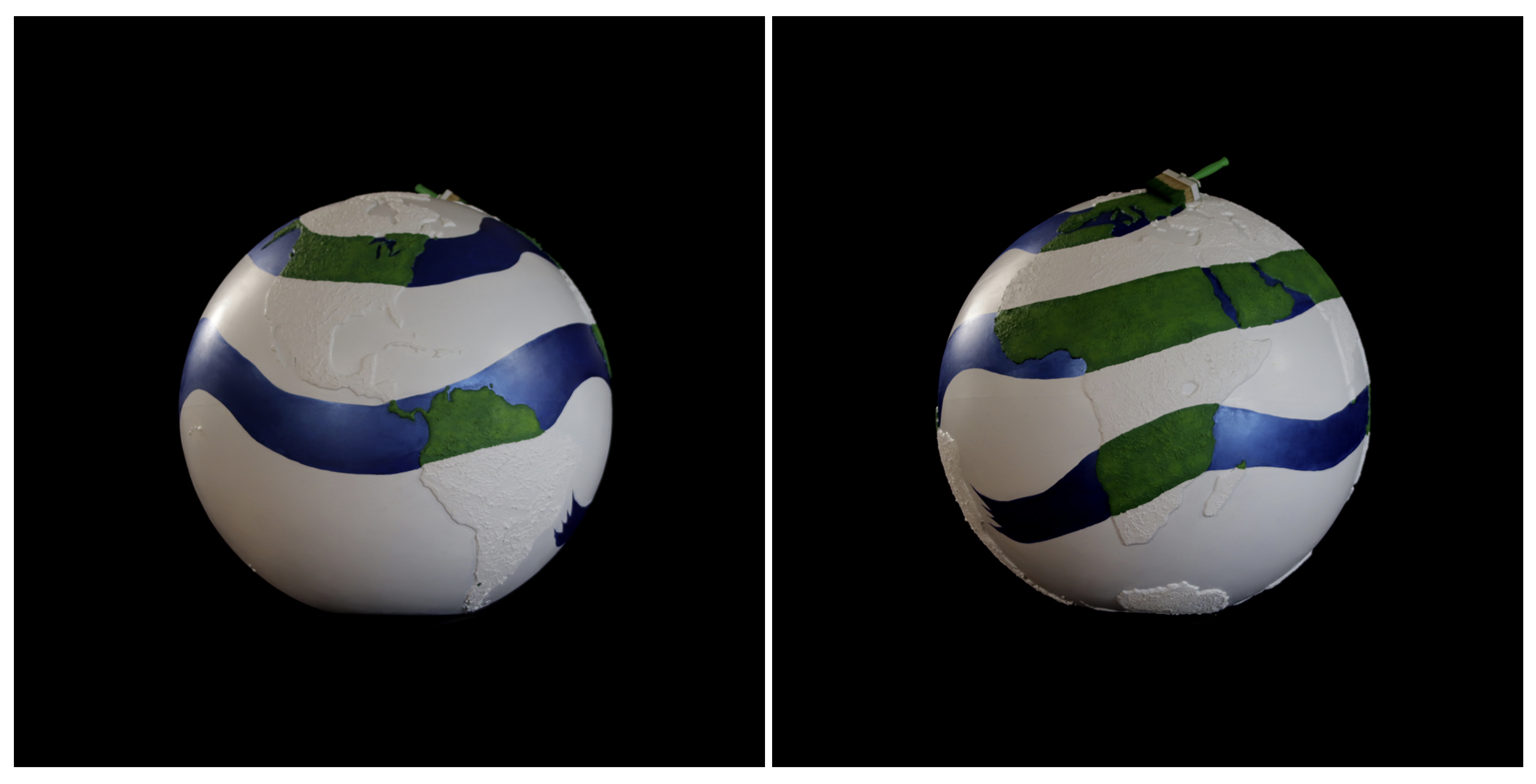 Il globo è stato trattato con calce naturale per dare risalto ai continenti, sui quali una ampia pennellata svela, attorno alla sfera, il verde delle terre emerse e l’azzurro degli oceani. L’azione del Gruppo Boero esprime quindi bellezza e vitalità attraverso i colori e, al tempo stesso, rispetta l’ambiente nel quale ognuno di noi vive e si esprime.
