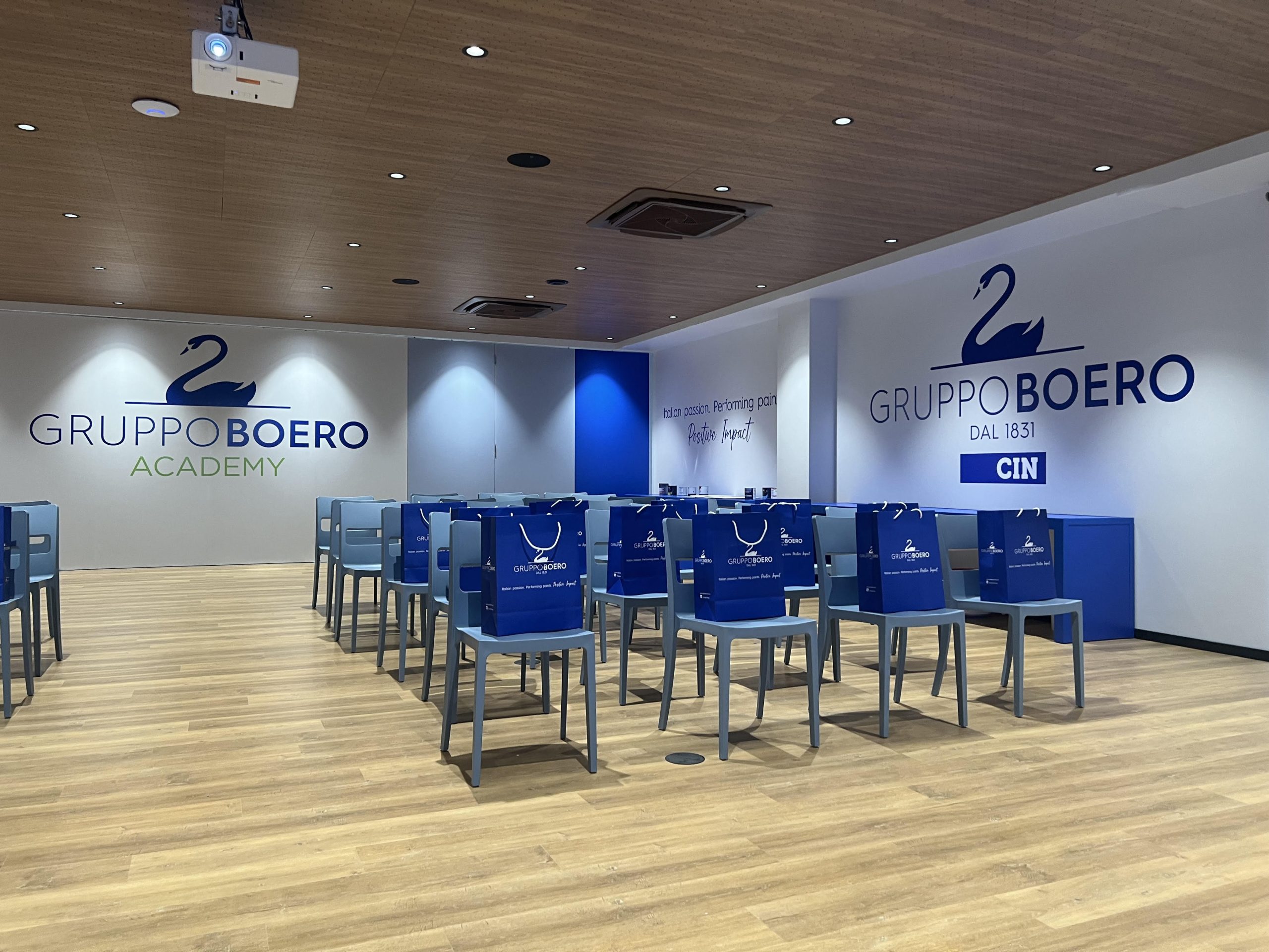 Spiega Riccardo Carpanese, Direttore Marketing di Gruppo Boero. «Il progetto ha previsto un grande impegno anche in termini di risorse umane specializzate: un team di collaboratori di Gruppo Boero ha lavorato in modo dedicato, coinvolgendo profili interdisciplinari anche attraverso focus group volti a disegnare una proposta che rispondesse a reali esigenze di crescita professionale. Consulenti di marketing e comunicazione, esperti di formazione manageriale e progettisti ci hanno supportato nel definire un luogo e una proposta allineati ai nostri valori che potesse costituire una via distintiva». Continua Carpanese. «Il nostro Gruppo ha colto la crescente necessità di mettere a sistema le competenze interne e degli attori delle filiere in cui operiamo, dedicando a questo nostro impegno anche un luogo di incontro centrale, l‘Academy. L’aspetto distintivo rispetto a quanto avviene di norma nella nostra industria è la volontà di non occuparci solo di formazione frontale, ma di trasformare la nostra Academy in un luogo dove, assieme a professionisti di spicco e rappresentanti della filiera di riferimento, sarà possibile riflettere sui trend attuali e sugli scenari di sviluppo del settore, in un processo di arricchimento reciproco». Continua Carpanese. «Per quanto riguarda, nello specifico, il mondo dell’edilizia, sono in atto profonde trasformazioni: il nostro Paese si trova di fronte alla necessità di riqualificare buona parte del patrimonio immobiliare per renderlo più efficiente, salubre e sicuro. Per potere compiere questa transizione, sono necessarie soluzioni dalla durabilità, efficacia e sostenibilità certificate e competenze specialistiche nella scelta dei sistemi, nella progettazione e nell’esecuzione degli interventi».