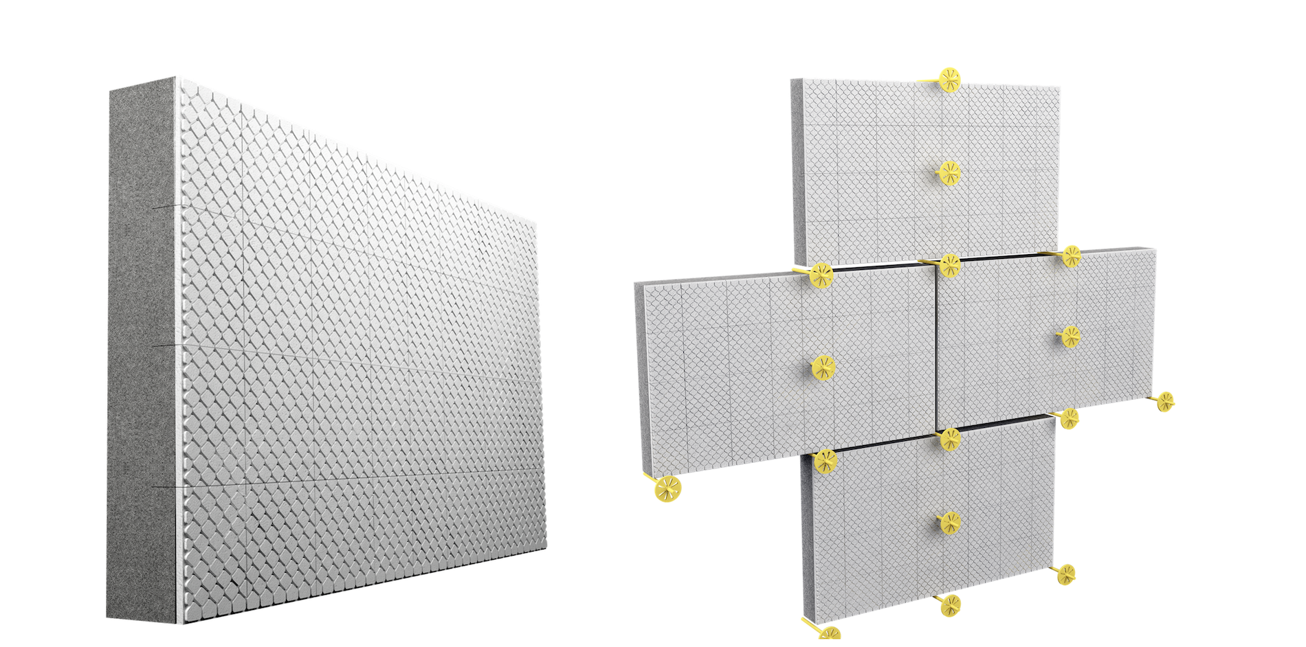 È realizzata con il nuovissimo Eps di Basf, il Neopor Bmb che è la versione Biomass Balance del polistirene espandibile con grafite (Eps) Neopor.