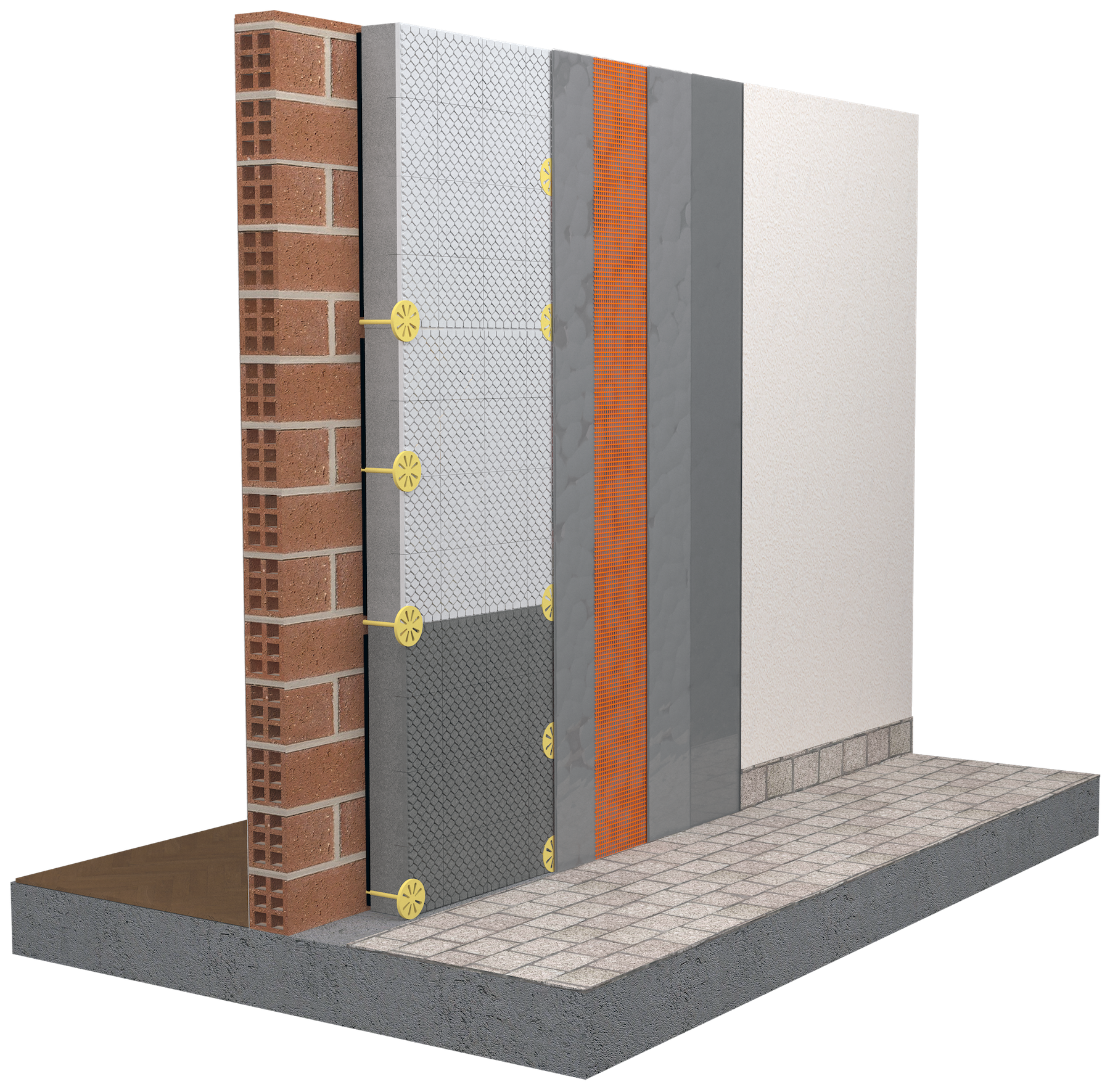 La goffratura, presente su tutta la superficie esterna del pannello permette la posa di una maggiore quantità di intonaco rasante (1/1,5 kg in più al m2), creando così uno strato più resistente agli urti, un vero e proprio sistema cappotto “rinforzato” ad alte prestazioni.
