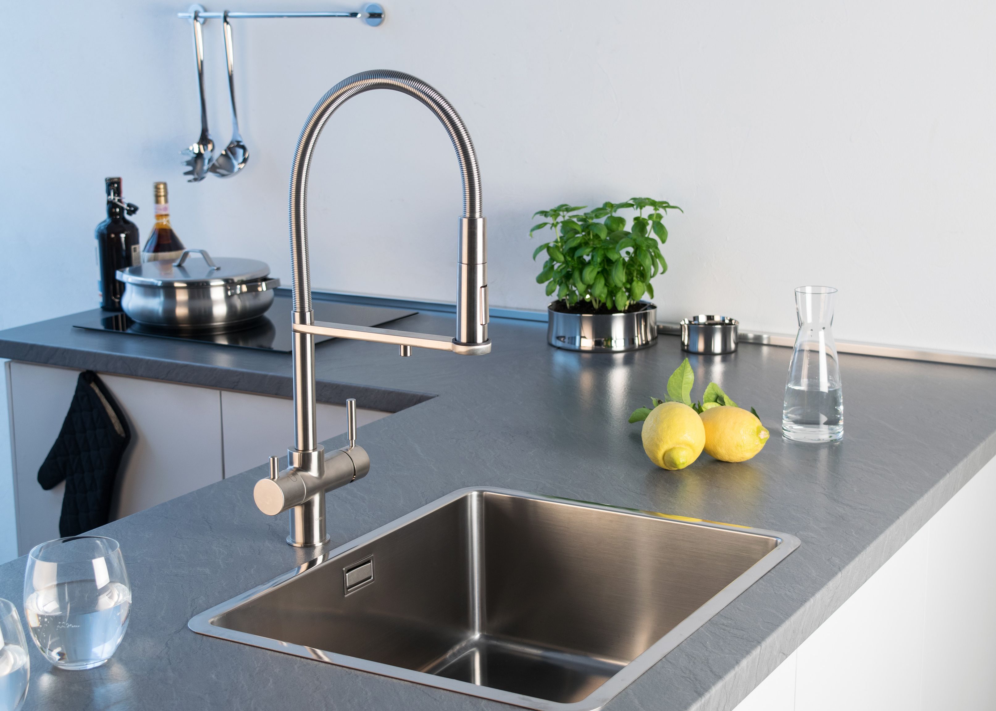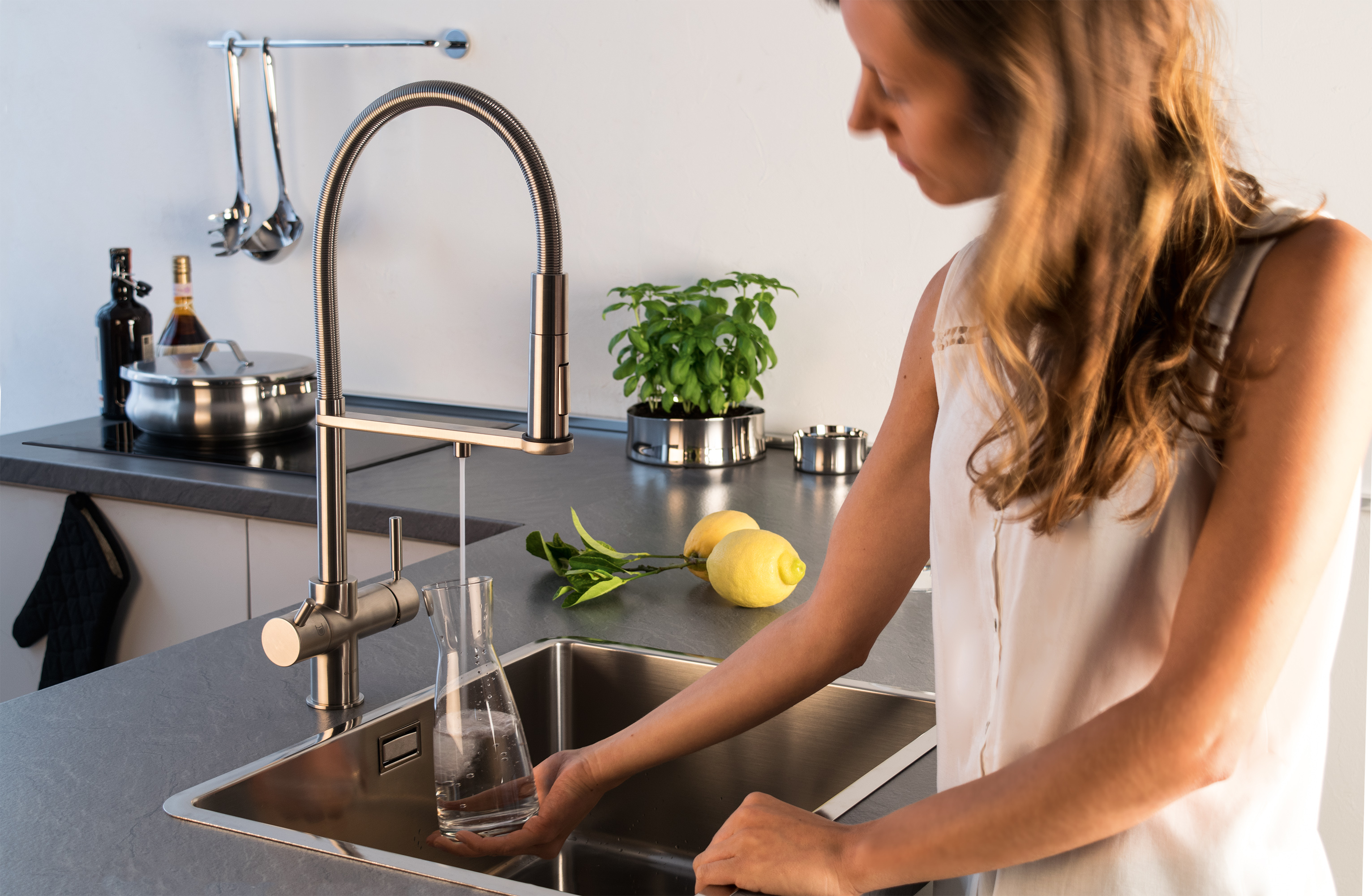 Guglielmi ha presentato Tuttuno della collezione Pura, il miscelatore eco-friendly per la cucina di ultima generazione che racchiude in un unico oggetto fino a 5 diverse funzioni: l’erogazione di acqua depurata naturale come di sorgente, refrigerata, calda a 100°, frizzante oppure la comune acqua domestica. Tuttuno, realizzato con materiali, finiture e design all’avanguardia, certificato, brevettato e 100% made in Italy, permette di ottenere l’acqua a 100° direttamente dal rubinetto, senza dover aspettare i tempi della bollitura, ma anche frizzante o semifrizzante, e refrigerata, indispensabile in preparazioni come la tradizionale pastella o, ancor meglio la più leggera e delicata tempura.