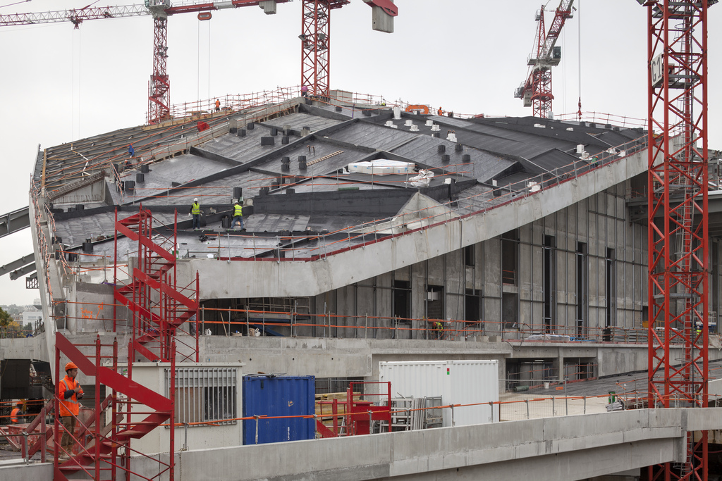 Una volta completato, l’esterno dell’edificio sarà rivestito da una facciata in alluminio che prevede 78mila forme ad ala collegate tra loro. Un arco alto 52 metri sormonterà l’intera struttura e consentirà di proiettare i filmati dei concerti su grandi schermi visibili dall’esterno dell’edificio.