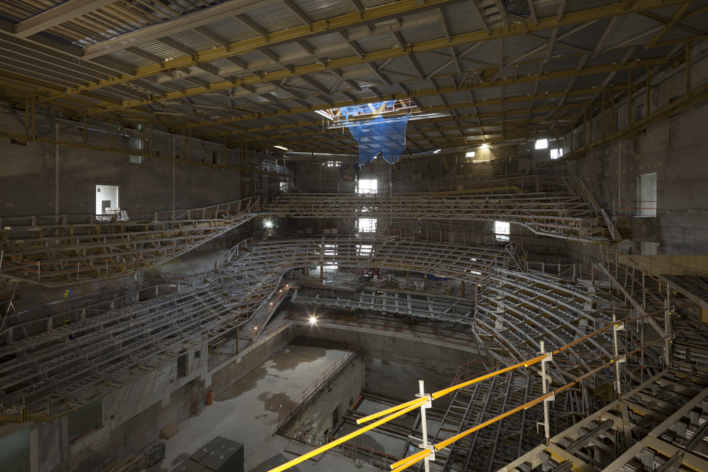 La sala da concerto, con una capienza di 2400 posti, sarà realizzata con una doppia struttura a guscio di calcestruzzo e intonaco che fornirà un’acustica eccezionale all’interno dell’edificio.
