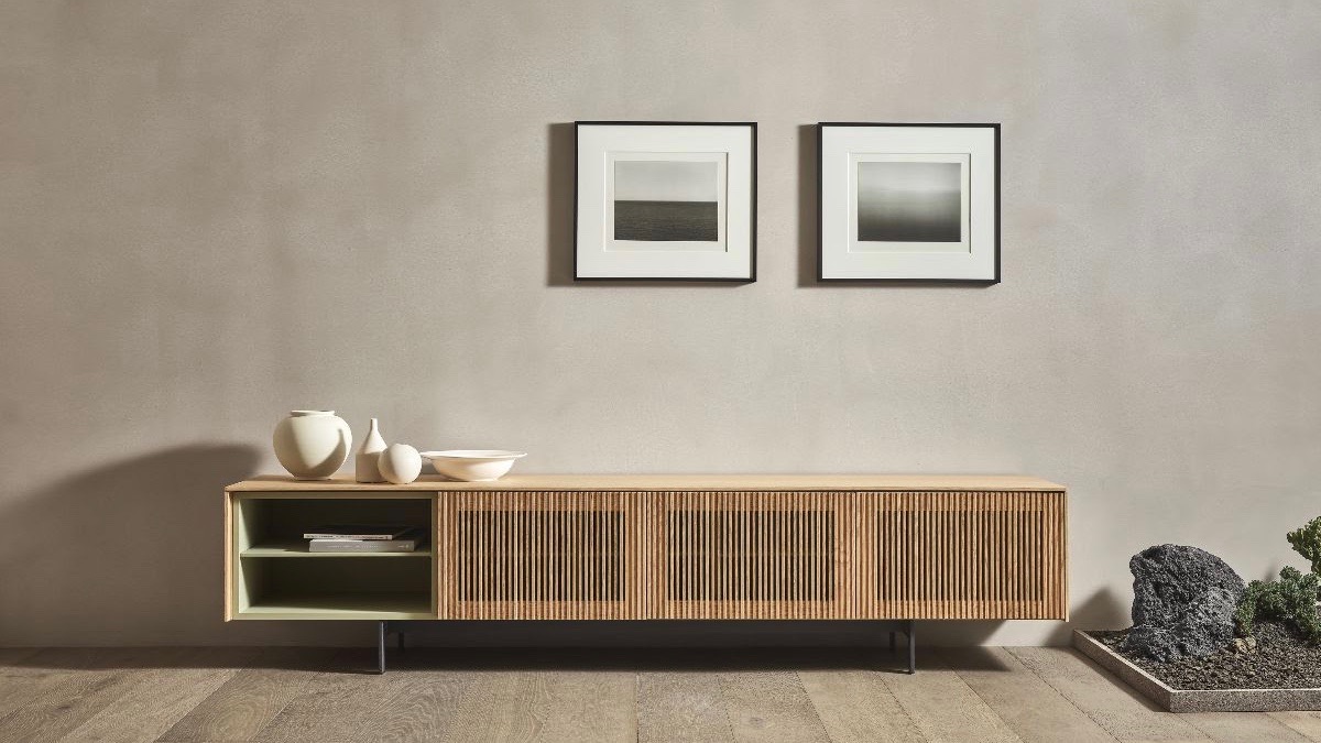 Toni neutri del grigio e del beige che dominano gli ambienti