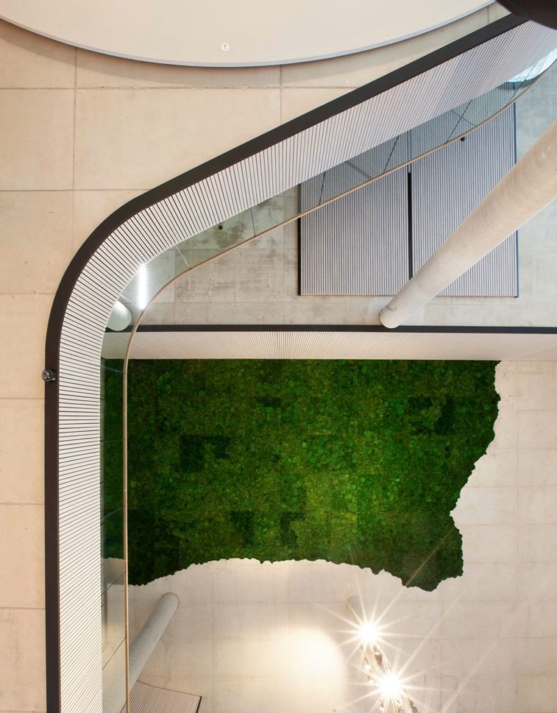 «È stato installato un piccolo profilo aggiuntivo al Sistema dei supporti che spinge il pannello all’esterno e verso il basso così da fissarlo in sicurezza. Questo permette ai progettisti di utilizzare il sistema in feltro sia per controsoffitti sia per pareti, creando così un effetto visivo interessante. Una volta sviluppato per controsoffitti, abbiamo pensato che fosse un sistema adattabile anche a parete. Ora che abbiamo creato un supporto adeguato per quest’evoluzione, siamo contenti delle sue performance e crediamo che sarà una scelta molto apprezzata in diverse applicazioni. Mentre il controsoffitto è il fonoassorbente dominante, il sistema HeartFelt a parete funge da aggiunta al trattamento acustico, assorbendo suoni fino a due metri».